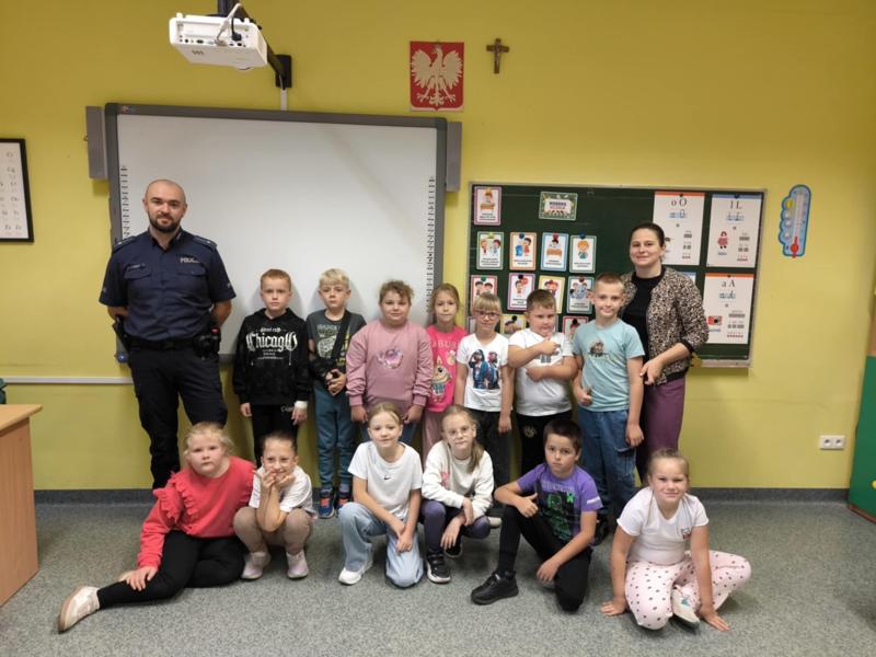 Spotkanie pierwszaków z policjantem