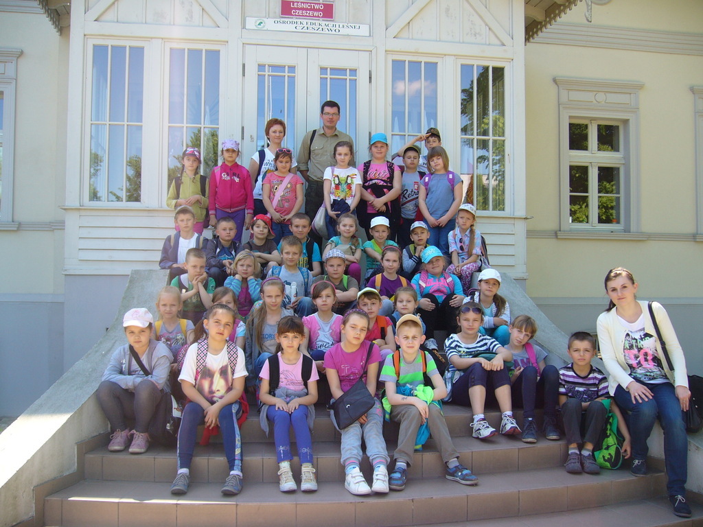 W słoneczny majowy poranek powitał nas Ośrodek Edukacji Leśnej w Czeszewie. Z wielkim zainteresowaniem wysłuchaliśmy prelekcji pana leśniczego. Następnie w sali edukacyjnej obejrzeliśmy ekspozycję zwierząt i roślin Wielkopolskiego Parku Narodowego, makietę lasu, film edukacyjny o pracy leśniczego. Następnie przeszliśmy na ścieżkę edukacyjną pt. „Rzeka”, gdzie poznaliśmy działalność rzeki, wód gruntowych i opadowych. Kolejnym punktem naszej wycieczki była przeprawa promem na drugi brzeg Warty, wędrówka po lesie i smażenie kiełbasek w ognisku. Wycieczka dostarczyła nam wielu niezapomnianych wrażeń i pogłębiła naszą wiedzę o przyrodzie. Wróciliśmy bardzo zadowoleni!