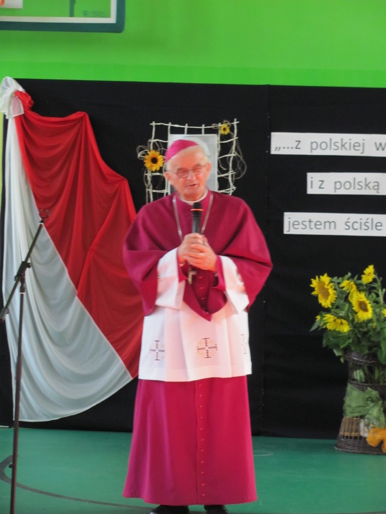 Nie traćcie wiary w lepszą przyszłość Polski" – w wolność i dostatek- te słowa Stanisława Mikołajczyka były i są mottem ludzi postępowych i odważnych. Wśród zaproszonych gości byli : ks. bp. Teofil Wilski - towarzyszący mu kapelan, proboszcz parafii w Wałkowie ks. Jacek Pochanke oraz przewodnicząca Szkolnej Rady Rodziców. W pamięci pozostały słowa, które wygłosił ks. bp. Teofil Wilski. , które pozwoliły wszystkim uczestnikom zastanowić się nad pojęciem patriotyzmu, wolności - nad tym, czym dla nich jest miłość do własnego kraju i bliźniego.