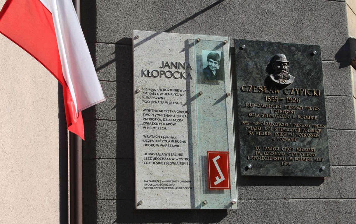 27 września 2014r. w Koźminie Wielkopolskim odbyły się uroczystości, w trakcie których obchodzono Jubileusz 110. rocznicy urodzin Janiny Kłopockiej; polskiej artystki, działaczki Związku Polaków w Niemczech i oczywiście autorki Znaku Rodła, (urodzonej w 1904r. w Koźminie Wlkp.). O godz. 10.00 w kościele farnym odprawiono uroczystą mszę św.. Następnie władze gminy, goście, oraz, poczty sztandarowe przeszły za koźmińską orkiestrą ulicami: Kościelną, Zamkową, Stęszewskiego i Borecką pod budynek kina „Mieszko” przy ul. Boreckiej, gdzie poświęcono i odsłonięto pamiątkową tablicę na ścianie budynku. Naszą szkołę reprezentowali przedstawiciele Samorządu Uczniowskiego w składzie: Katarzyna Półrolniczak, Patrycja Teodorczyk, Krystian Zmyślony, z opiekunem, p. Magdaleną Fabich-Bondzyło. W uroczystości uczestniczył również dyrektor szkoły, p. Bartłomiej Rogala, który wraz z pozostałymi dyrektorami (gimnazjum i SPnr3) złożył symboliczną wiązankę kwiatów. W końcowej części odbyły się występy dzieci z koźmińskich szkół.