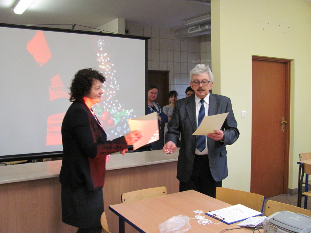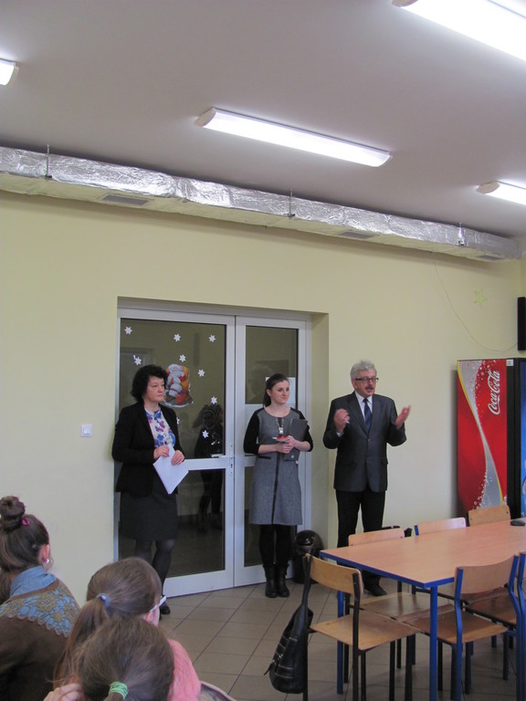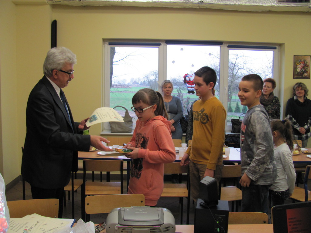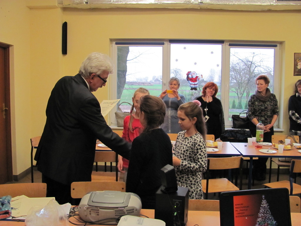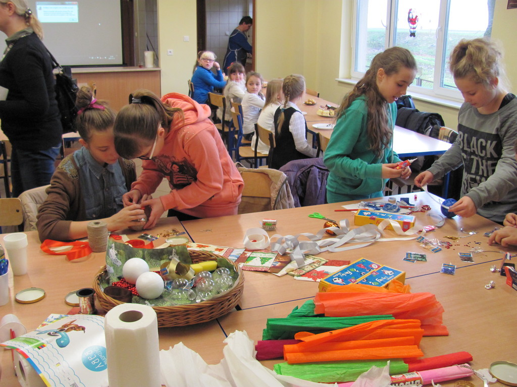 11 grudnia w naszej szkole gościliśmy dzieci i młodzież ze szkół podstawowych z terenu gminy Koźmin Wlkp. Uczniowie przybyli wraz z opiekunami, aby zaprezentować swoje talenty plastyczne i wokalne w Międzyszkolnym Konkursie „Tradycje i obrzędy bożonarodzeniowe”, którego organizatorem była nasza szkoła. Konkursowe zmagania odbywały się w trzech kategoriach. Kategoria I to najpiękniejsze wykonanie kolędy lub pastorałki. W świąteczny klimat przeniosły nas uczennice klas I-III. Naszą szkołę reprezentowała Patrycja Kowal, która pięknie, czysto i nastrojowo wykonała kolędę „Gdy śliczna Panna”. W II kategorii zmierzyli się uczniowie klas IV-VI, których zadaniem było wykonanie bombki. Uczniowie wykonywali bombki na miejscu, z dostępnych materiałów. W tej kategorii naszą szkołę reprezentowały Anna Kulka i Natalia Poczta. Ania i Natalia wykonały bombkę niezwykle estetycznie. Dodatkowo każda szkoła przywiozła ze sobą wykonany przez uczniów stroik bożonarodzeniowy. Wybór najpiękniejszego stroika odbył się w ramach III kategorii. Zadanie nie było prosteJ. Jury wspierane przez panią Mariolę Malinowską z MGOK w Koźminie Wlkp. oceniło pracę wszystkich dzieci przydzielając każdej szkole punkty. Suma punktów zebranych przez każdą szkołę w trzech kategoriach pozwoliła na wyłonienie „podium”.