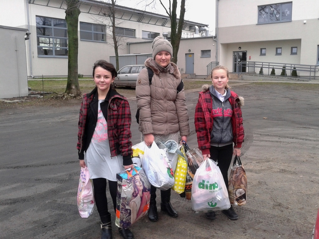 Dziękujemy WSZYSTKIM, którzy przyłączyli się do naszej akcji, a są to: Agata i Zosia Kuzia, Jakub i Asia Suszczyńscy, Zosia Zimna, Natalia Dawidowicz, Patrycja Teodorczyk, Agata Zawodna (absolwentka naszej szkoły), p. M. Fabich-Bondzyło. Wbrew pozorom uzbierało się ponad 20 dużych toreb z darami. Były to ubrania, żywność (w tym słodycze), kosmetyki, zabawki.