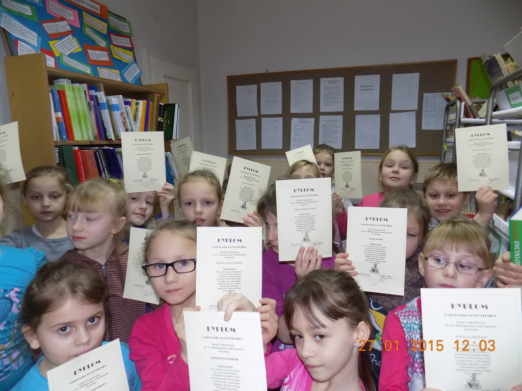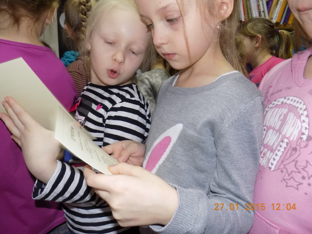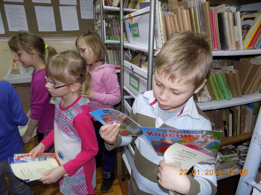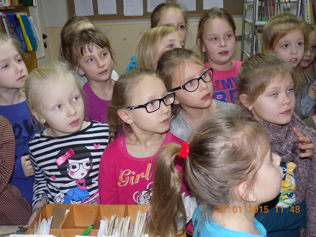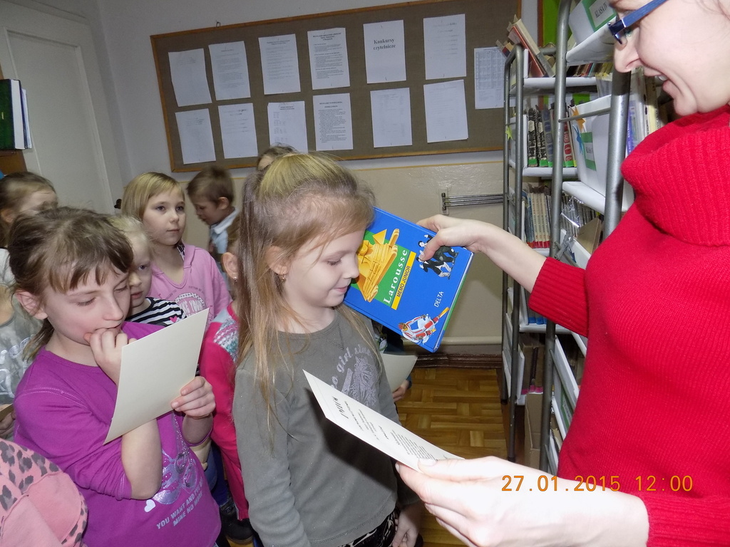 Pierwszoklasiści znają już wiele liter, potrafią już nieźle czytać- nadeszła więc pora, by stali się czytelnikami szkolnej biblioteki. Pani Danka- szkolna bibliotekarka, z uśmiechem na twarzy przywitała zaciekawione dzieci. Najpierw opowiedziała o pracy bibliotekarza, o zgromadzonych książkach, przedstawiła regulamin wypożyczeń, a następnie dokonała uroczystego pasowania na czytelnika. Każdy pierwszoklasista z dumą wracał do klasy trzymając w dłoni pierwszą wypożyczoną książkę. Niektórzy zaczęli czytanie od razu, jeszcze w bibliotece. Oby tego zapału starczyło na długie lata!!!
