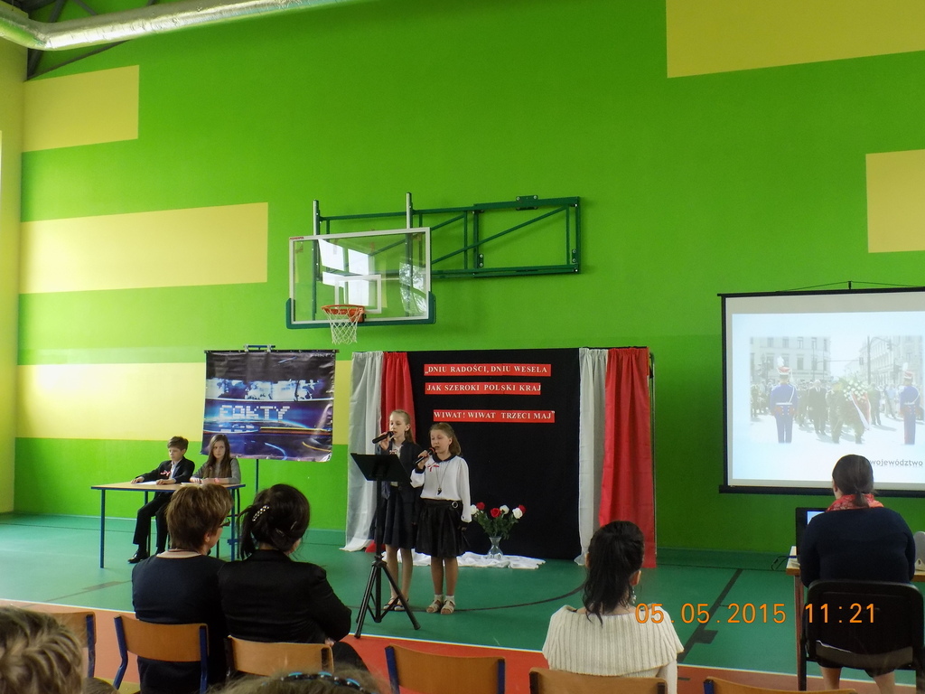 5 maja 2015 roku w naszej szkole odbyła się akademia upamiętniająca 224. rocznicę uchwalenia Konstytucji 3 Maja. Piątoklasiści (Wiktor Dymarski i Natalia Wosiek) zaprezentowali specjalne, świąteczne wydanie Faktów. Zabrzmiały także pieśni patriotyczne w wykonaniu Anny Kulki i Marleny Marciniak. Głos zabrała również pani Aleksandra Szymczak, która podziękowała za przygotowanie tej uroczystości. Wszyscy zgromadzeni podczas uroczystego apelu mogli obejrzeć, przygotowaną specjalnie na tę okazję, prezentację multimedialną. Akademię oraz dekorację przygotowała pani Agnieszka Włodarczyk.