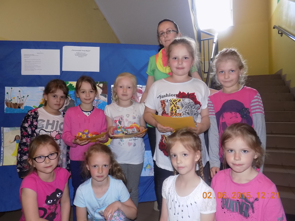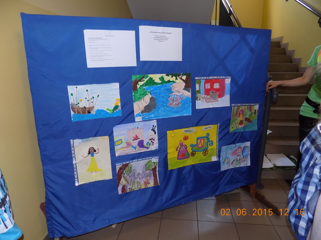 Biblioteka szkolna w dniu 19 maja ogłosiła konkurs plastyczny „ Zaczarowany Świat Bajek” dla klasy I na najładniejszą ilustrację do przeczytanej lektury. Konkurs trwał od 19.05- 2.06.2015r. Zadania konkursowe zostały dokładnie określone w regulaminie konkursu .