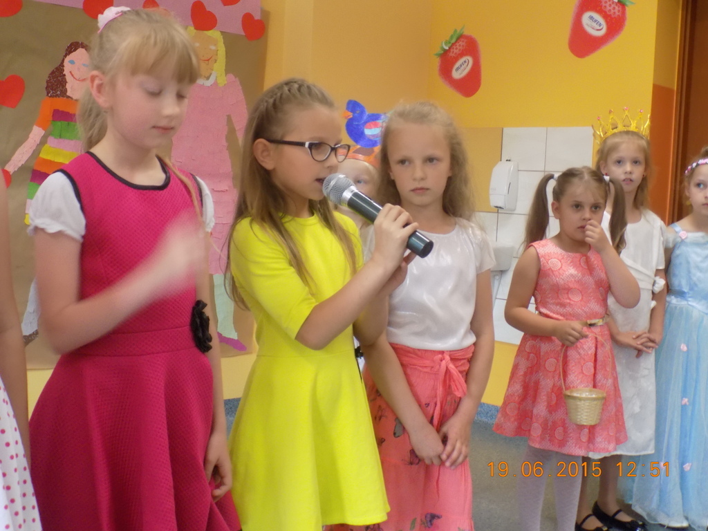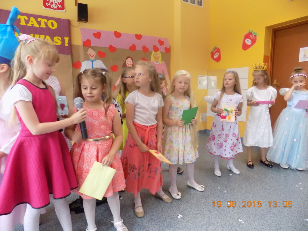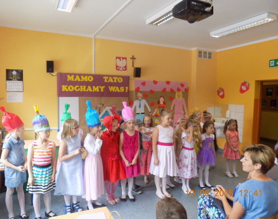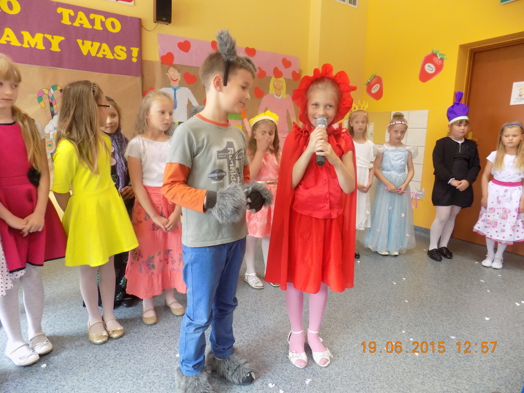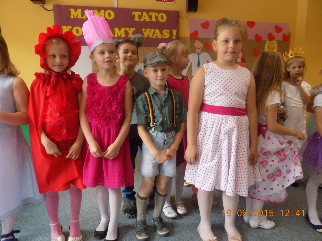 W piątkowe południe pierwszaki zaprosiły rodziców do krainy bajki. Zaproszeni goście mogli podziwiać Jasia i Małgosię, Czerwonego Kapturka, wilka, Królewnę Śnieżkę i 7 krasnoludków, Calineczkę i inne postaci ze świata bajek. Nie mogło zabraknąć tańca i bajkowych piosenek. W specjalnej dedykacji dzieci zaśpiewały utwór dla mamy i specjalny utwór dla taty. Po wręczeniu laurek, wszyscy udali sie na "słodkie co nieco".