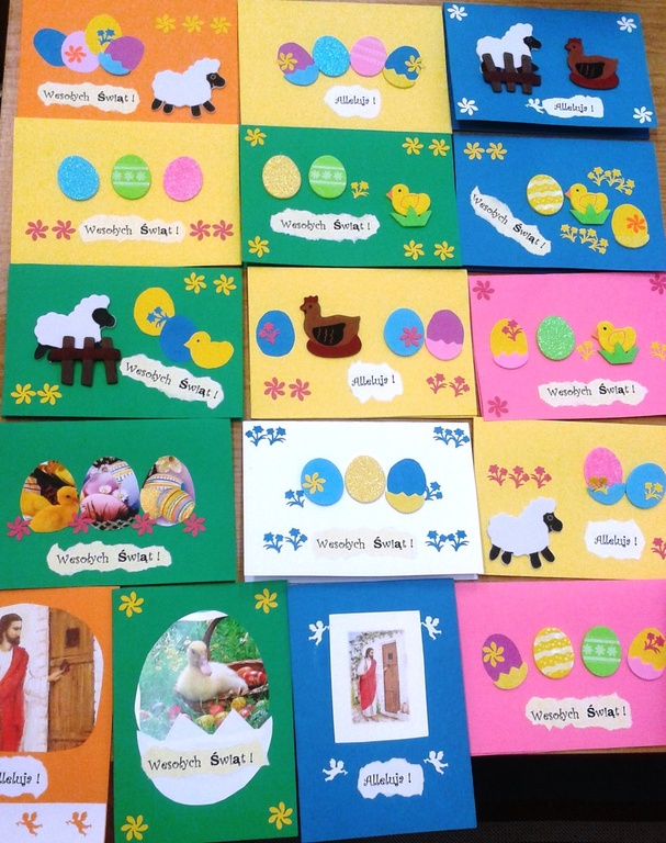 - przygotowanie kartek z życzeniami (Święto Edukacji Narodowej, Boże Narodzenie, Dzień Kobiet, Wielkanoc)