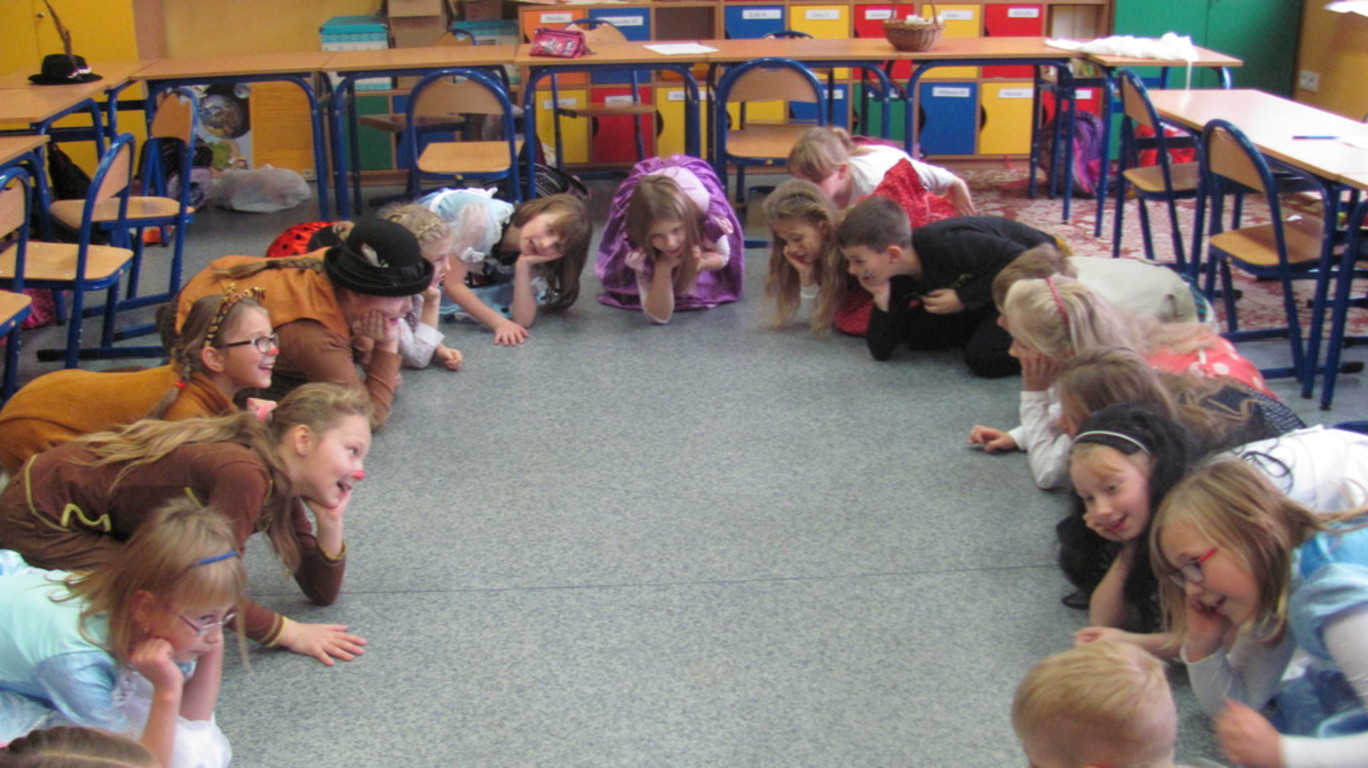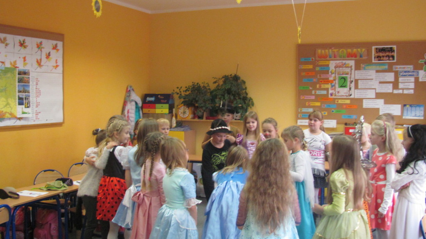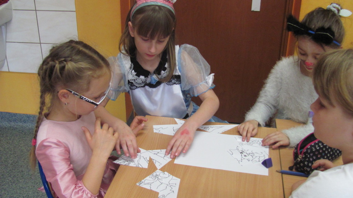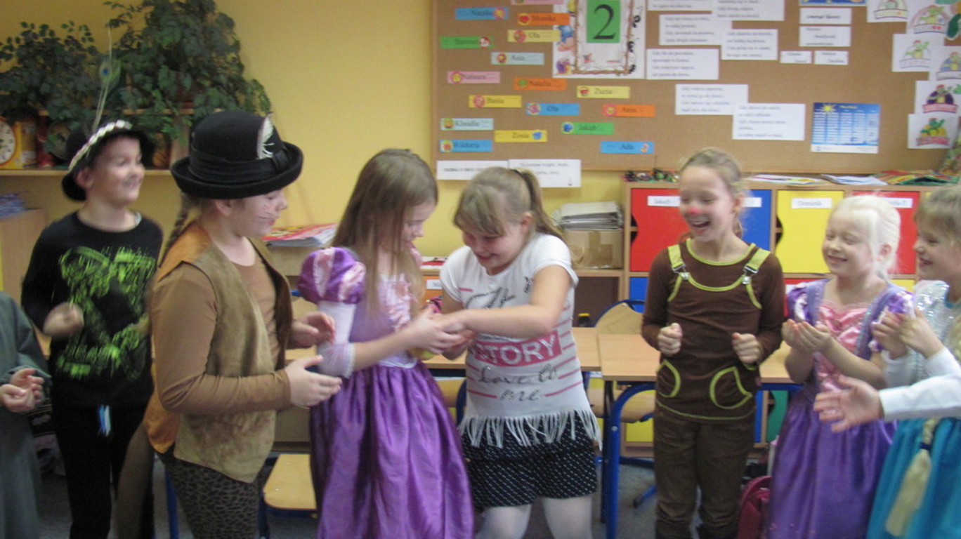Nie od dziś wiadomo, że bajki nie tylko powinny umilać dzieciom czas, ale także uczyć i pokazywać sytuacje, z którymi mamy do czynienia na co dzień, w sposób bardziej przystępny niż tylko pogadanka. Dzięki bajkom, dziecko może wczuć się w sytuację głównego bohatera, zobaczyć jak radzi sobie z problemami, czy też przeanalizować jego postępowanie i wyciągnąć wnioski na przyszłość. Temu też służyć miały zajęcia "Popołudnie z książką", w czasie których drugoklasiści mieli możliwość przypomnienia lub poznania najpiękniejszych bajek i baśni. Zwieńczeniem były obchody Międzynarodowego Dnia Postaci z Bajek, które obfitowały w zabawy i konkursy.