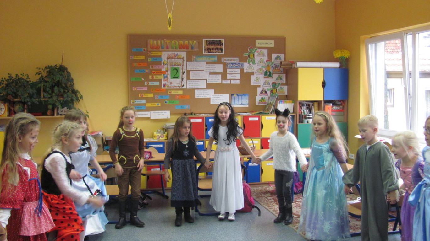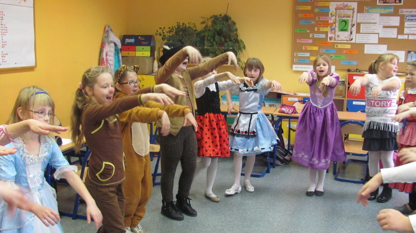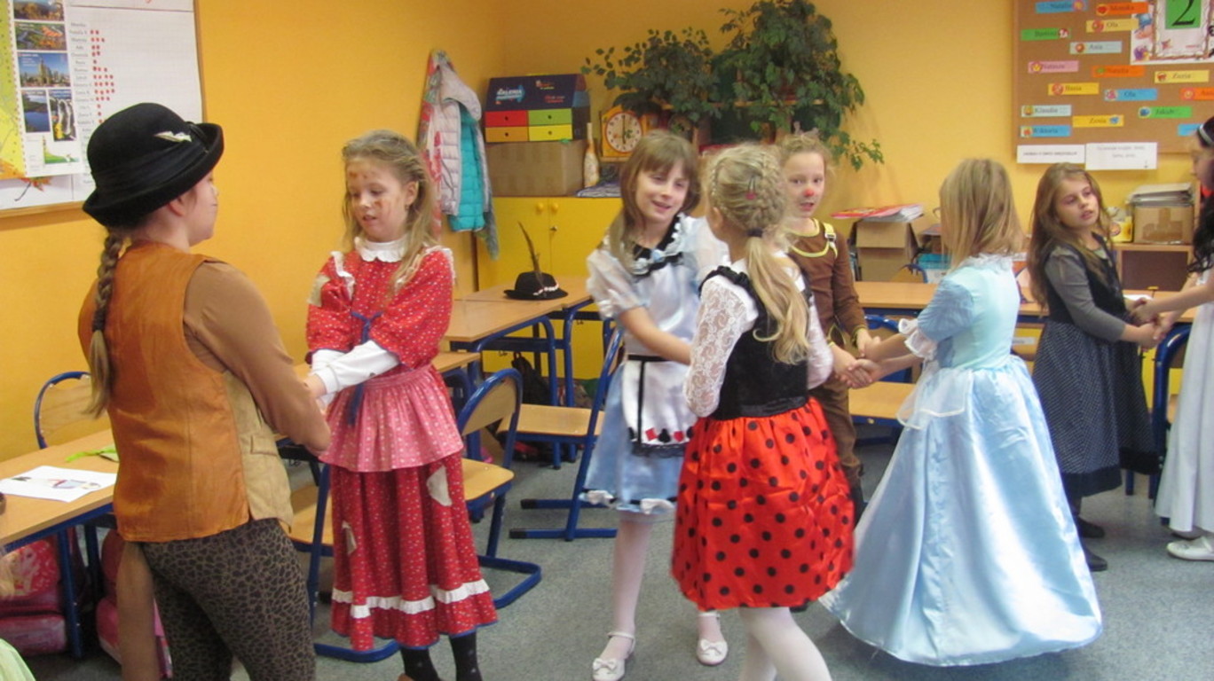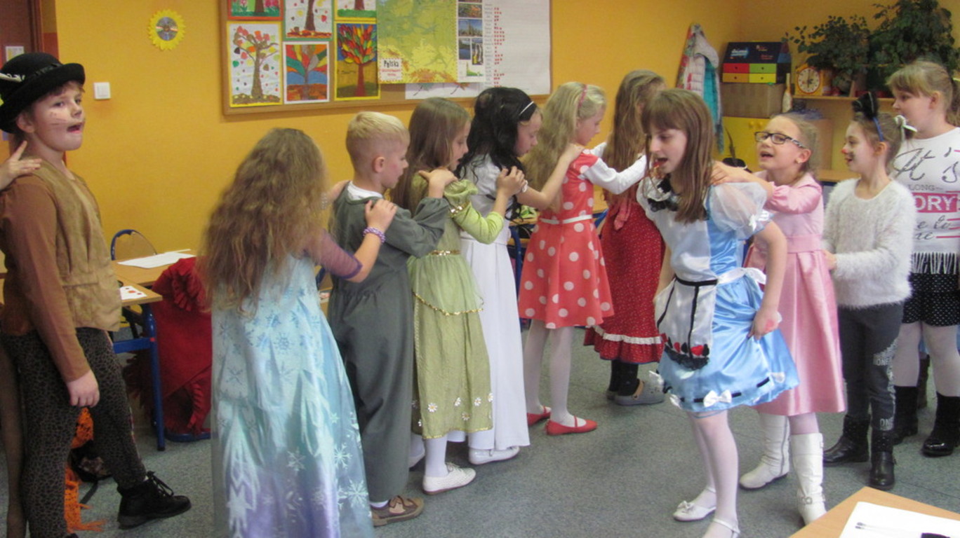 Nie od dziś wiadomo, że bajki nie tylko powinny umilać dzieciom czas, ale także uczyć i pokazywać sytuacje, z którymi mamy do czynienia na co dzień, w sposób bardziej przystępny niż tylko pogadanka. Dzięki bajkom, dziecko może wczuć się w sytuację głównego bohatera, zobaczyć jak radzi sobie z problemami, czy też przeanalizować jego postępowanie i wyciągnąć wnioski na przyszłość. Temu też służyć miały zajęcia "Popołudnie z książką", w czasie których drugoklasiści mieli możliwość przypomnienia lub poznania najpiękniejszych bajek i baśni. Zwieńczeniem były obchody Międzynarodowego Dnia Postaci z Bajek, które obfitowały w zabawy i konkursy.