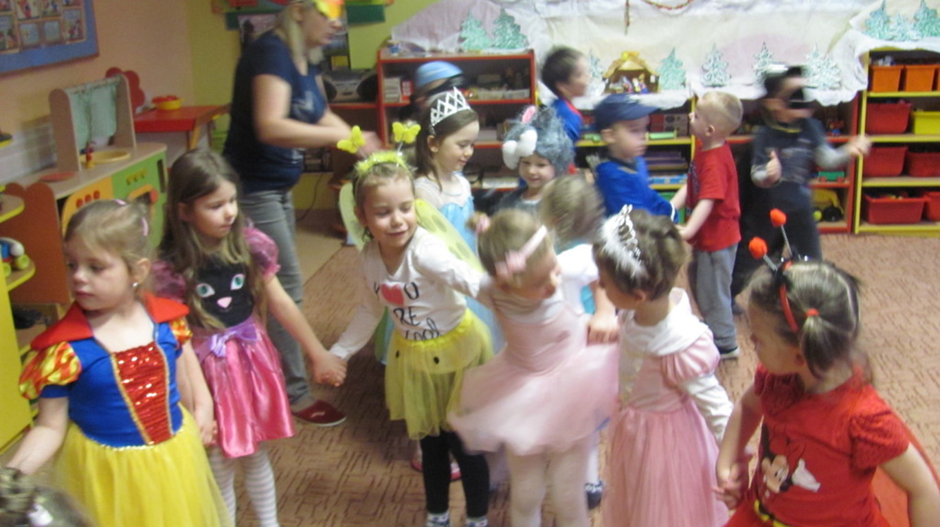 Tego dnia już od rana w przedszkolu pojawiały się kolorowe postacie. Dzieci przebrane były za bohaterów znanych bajek, w salach przedszkolnych można było spotkać wróżki, królewny, delikatne motylki, rycerzy, piratów, policjantów, Spider-Mana, Batmana, ... nie sposób zliczyć i wymienić tych wszystkich postaci. Rozpoznać dzieci było bardzo trudno. Podczas przerw dzieci chętnie uczestniczyły w zorganizowanych konkursach i częstowały się pysznymi wypiekami przygotowanymi przez naszych kochanych Rodziców. Wspólna zabawa przyniosła wiele radości naszym wychowankom, a to było głównym celem tego balu.