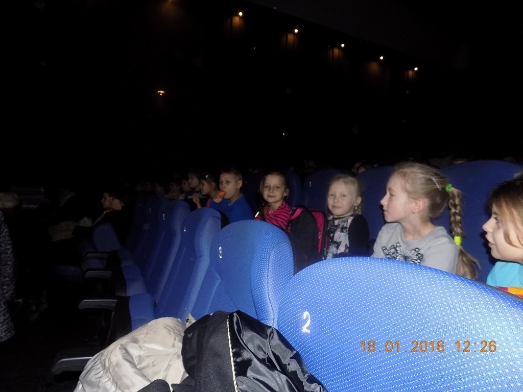 W pierwszy dzień ferii klasa II,III i IV udały się do Jarocina do kina "Echo" na II część filmu "Bella i Sebastian". Mimo mroźnej pogody wszystkim dopisywały humory, bo to przecież ferie!!! Dzieci z zaciekawieniem obejrzały film.