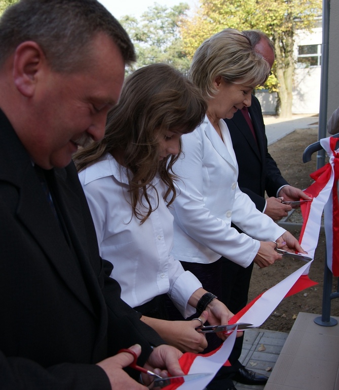 Przecięcia wstęgi dokonał burmistrz Maciej Bratborski, przewodniczący Rady Miasta Justyn Zaradniak, dyrektor szkoły Loretta Białek i przewodnicząca Szkolnego Samorządu Uczniowskiego Monika Kozłowska. Wśród zaproszonych gości znaleźli się również: