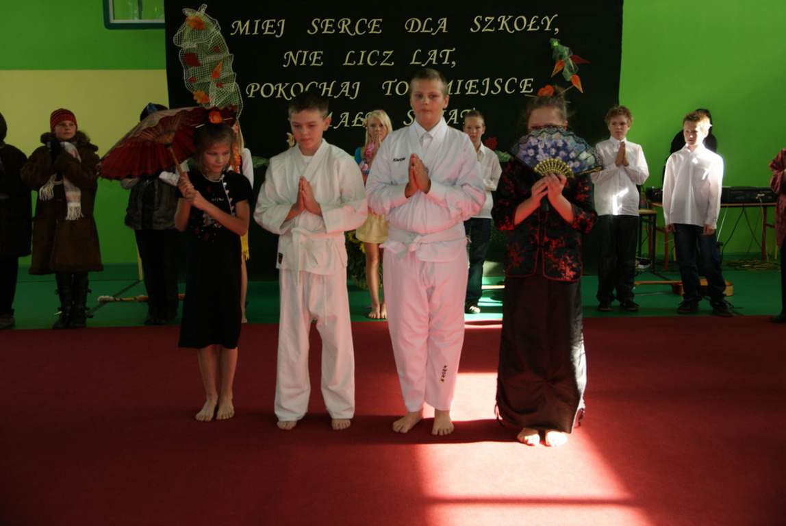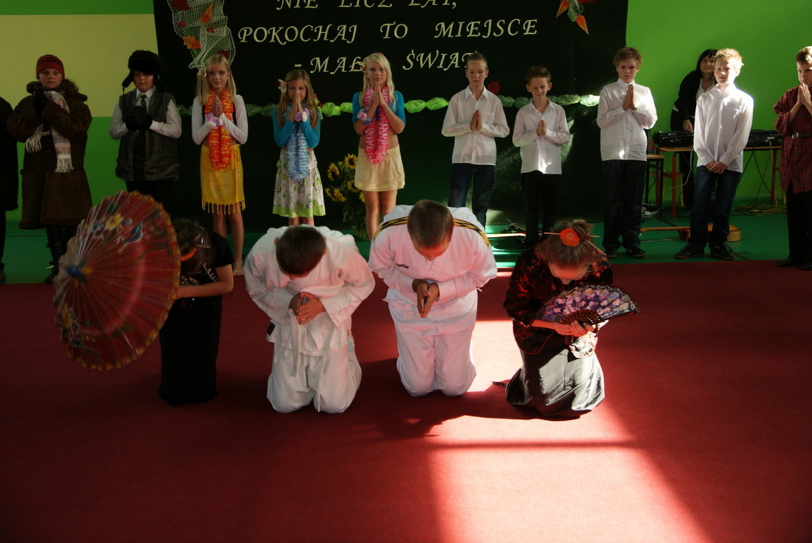 W części artystycznej dzieci zaprezentowały widowisko przedstawiające „Podróże po różnych krajach świata”. Po uroczystości zaproszono gości do zwiedzania szkoły.