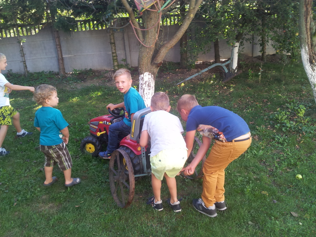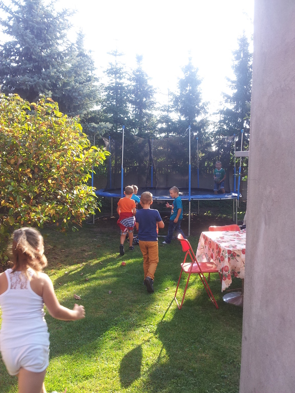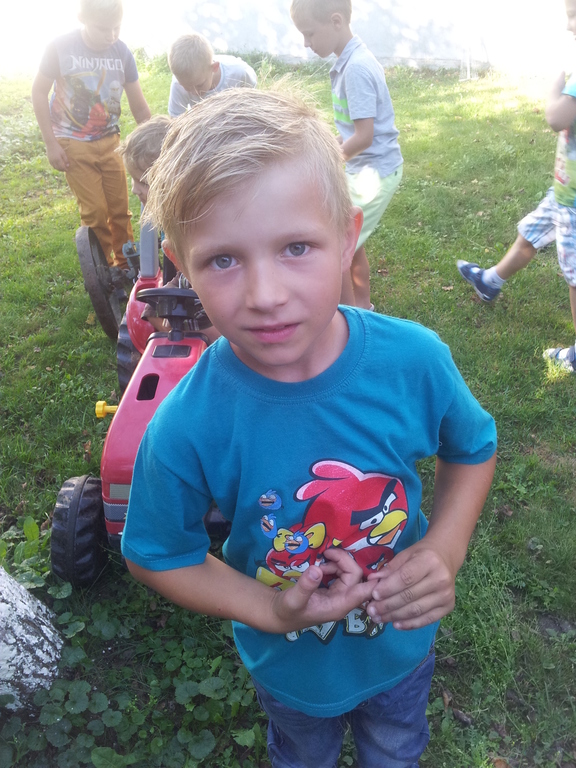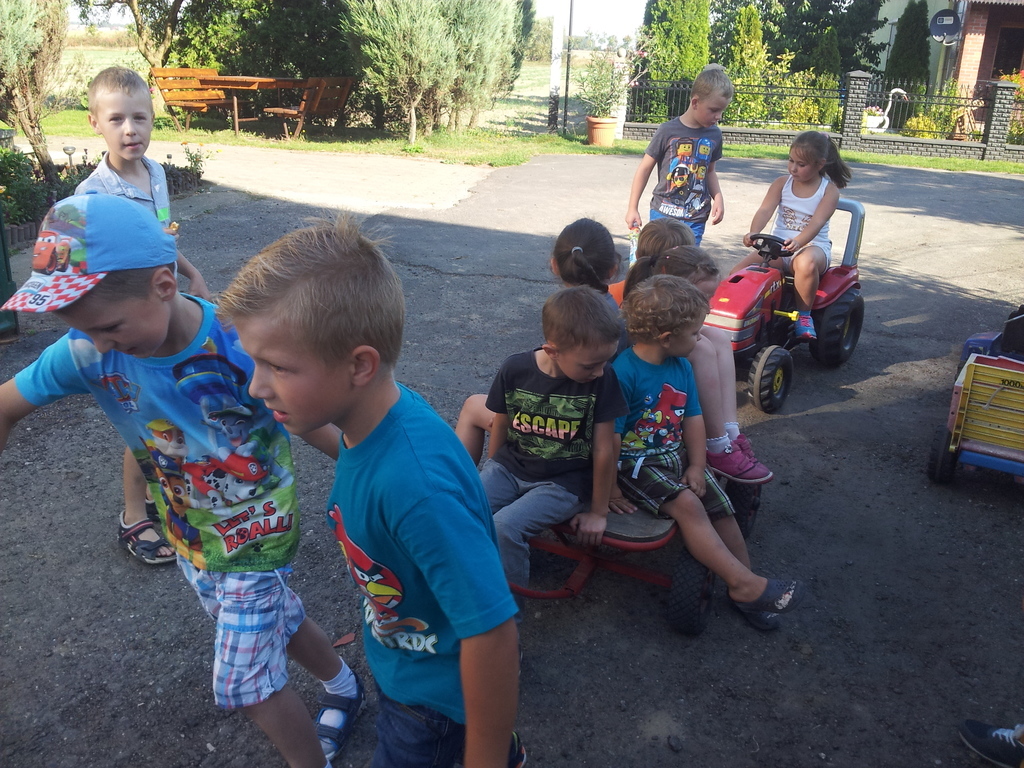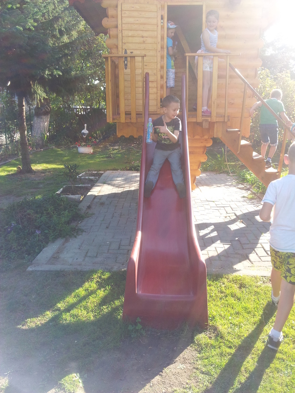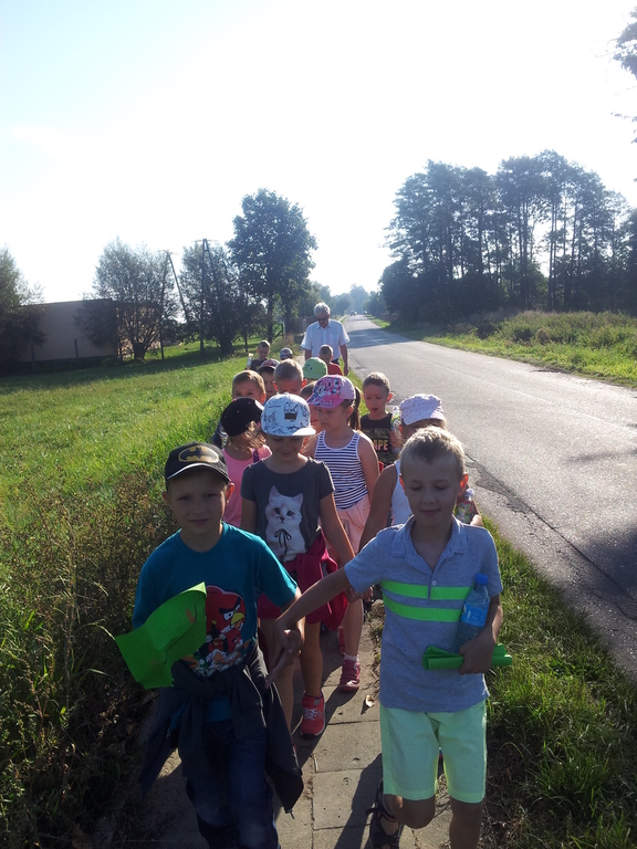 Uczniowie klasy drugiej wraz z kolegą z klasy pierwszej w dniu 9 września br. udali się na zieloną lekcję. W czasie pieszej wycieczki obserwowali rośliny i zwierzęta naszej okolicy. Utrwalali również reguły przechodzenia przez jezdnię . Najciekawszą i fascynującą atrakcją był domek na drzewie, z którego dzieci obserwowały przyrodę oraz mini plac zabaw, w którym mogły bezpiecznie bawić się. Dzieci były zachwycone tak bliskim obcowaniem z przyrodą. Po intensywnej pracy na dzieci czekał poczęstunek przygotowany przez rodziców Bartosza. A na świeżym powietrzu apetyt dopisywał, jak nigdy dotąd. Żal było opuszczać to urokliwe miejsce. Po powrocie do szkoły, dzieci pełne wrażeń opowiadały o wycieczce, która bardzo im się podobała. Zielona lekcja to doskonała okazja, aby zarówno uczyć się jak i aktywnie wypoczywać, a także wzmacniać więzi koleżeńskie. Dlatego też serdecznie dziękujemy pani Emilii i Przemysławowi Kuzia, którzy wspierając to przedsięwzięcie umożliwili dzieciom rozwijanie wiedzy i umiejętności oraz poszerzanie horyzontów.