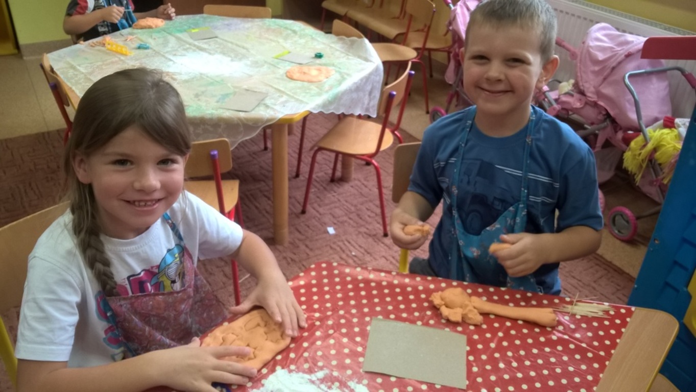 Przedszkolaki lepią z masy solnej – góralskie oscypki.