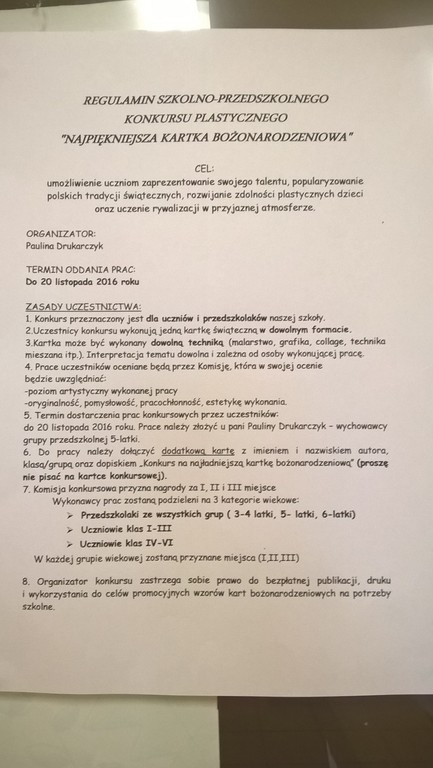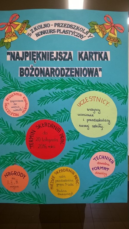 Zachęcamy Cię do wzięcia udziału w konkursie na kartkę świąteczną. Wykaż się pomysłowością, starannością i oryginalnością. Już dziś pomyśl, jak zaplanować swoją pracę. Czekamy na prace do 20 listopada. Na Was czekają atrakcyjne nagrody.