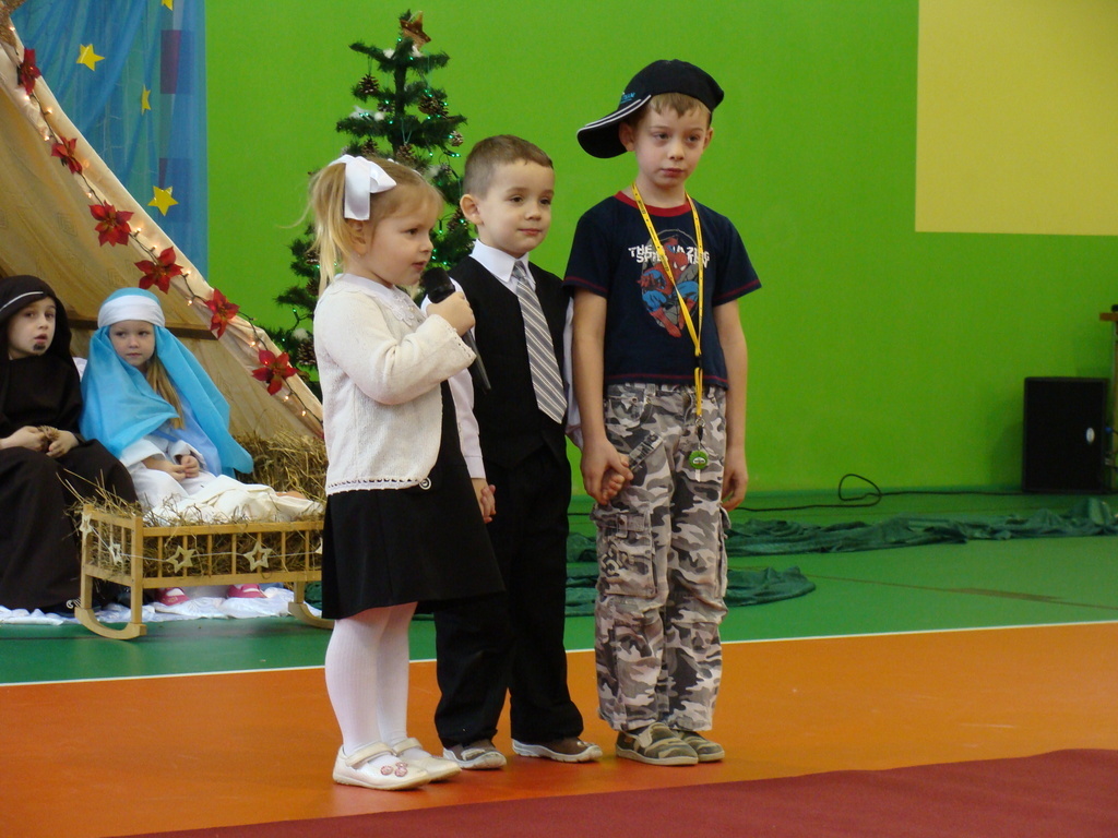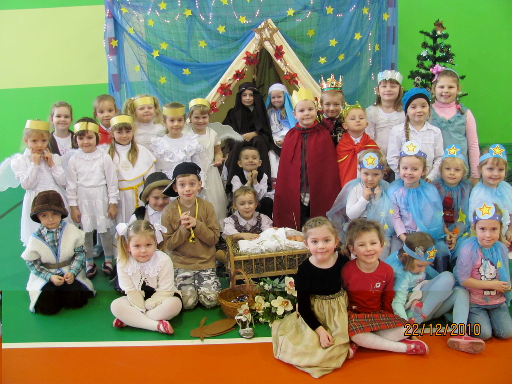 Aby zachować tradycje bożonarodzeniowe, przedszkolaki przygotowały 21 i 22 grudnia dla Rodziców oraz dla całej społeczności szkolnej Jasełka. Dzieci poradziły sobie świetnie z przypisanymi im rolami, pięknie śpiewały, tańczyły i prezentowały swoje zdolności aktorskie, dopełnieniem umiejętności dzieci były ich stroje oraz dekoracje sali. Rodzice byli zachwyceni przedstawieniem, a cała szkoła wtórowała i śpiewała razem z przedszkolakami świąteczne kolędy – oklaskom nie było końca. Nie zabrakło także najbardziej oczekiwanego gościa przez dzieci – Mikołaja z mnóstwem prezentów!! Odwiedziny te sprawiły dzieciom ogromną radość. Rodzice po występie mogli skosztować pysznych wypieków przygotowanych przez mamy dzieci. Te uroczyste dni w naszej szkole wprowadziły wszystkich w prawdziwie świąteczny nastrój. Nad całością programu artystycznego dzieci czuwały wychowawczynie grup oddziałów przedszkolnych Paulina Drukarczyk i Adrianna Stasik.