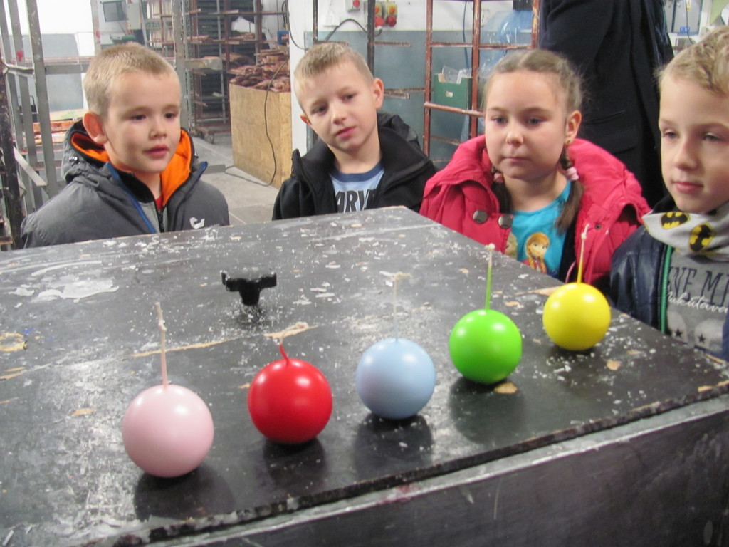W dniu 15 listopada 2016 r. drugoklasiści i pierwszoklasista wybrali się na wycieczkę do firmy ARTIS zlokalizowanej w Koźminie Wlkp. ARTIS od wielu lat specjalizuje się w produkcji świec i ma już ugruntowaną pozycją wśród firm funkcjonujących w Polsce, wielu krajach Europy oraz poza nią. Asortyment wytwarzanych produktów jest bardzo różnorodny co sprawia, że z powodzeniem nadaje się do wykorzystania stosownie podczas rozmaitych okoliczności. Bogate wzornictwo i kolorystyka, wyróżnia go spośród innych obecnych na rynku tego typu produktów. Dzięki uprzejmości osoby zarządzającej firmą oraz jej pracowników uczniowie mieli okazję zwiedzić budynek oraz zapoznać się z procesem produkcyjnym. Dzieci dowiedziały się jaki produkt powstaje dzięki zaangażowaniu całej załogi. Przekonały się, że świeca to małe dzieło sztuki i pomimo wysokiego rozwoju technologicznego współczesnego świata wciąż pozostaje produktem użytecznym i atrakcyjnym. Właściciele firmy Artis przygotowali dla wszystkich niespodzianki. Obdarowali uczestników wycieczki produktami, które wytwarzają. Mile zaskoczone i radosne dzieci wesoło wracały z „krainy świec” do szkolnych obowiązków.