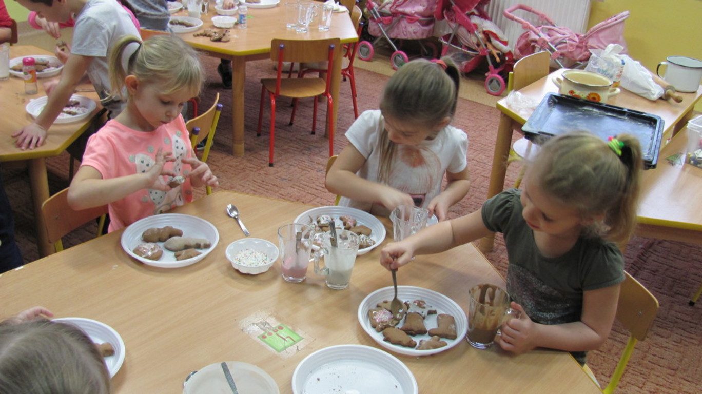Serdeczne podziękowania dla rodziców za hojność przy zakupie potrzebnych produktów oraz pomoc podczas pieczenia pierników. Dziękujemy również za przygotowanie piernikowego ciasta dla przedszkolaków pani Monice Stencel.