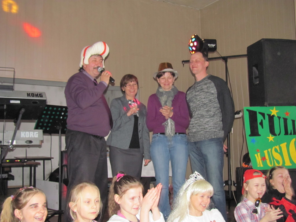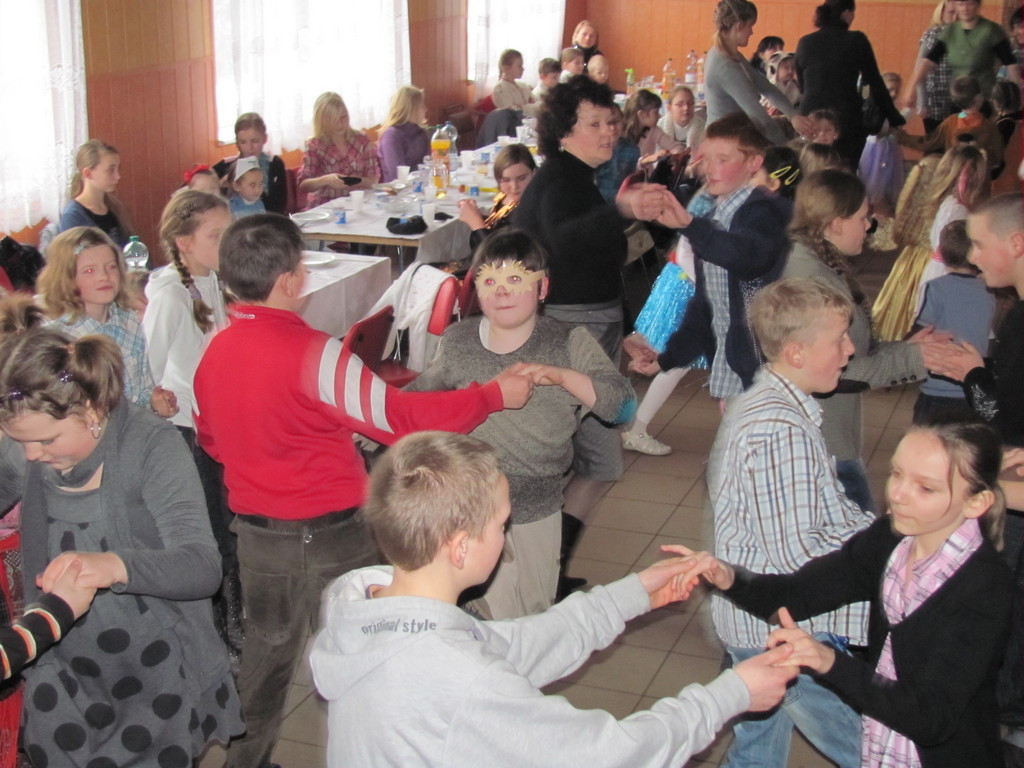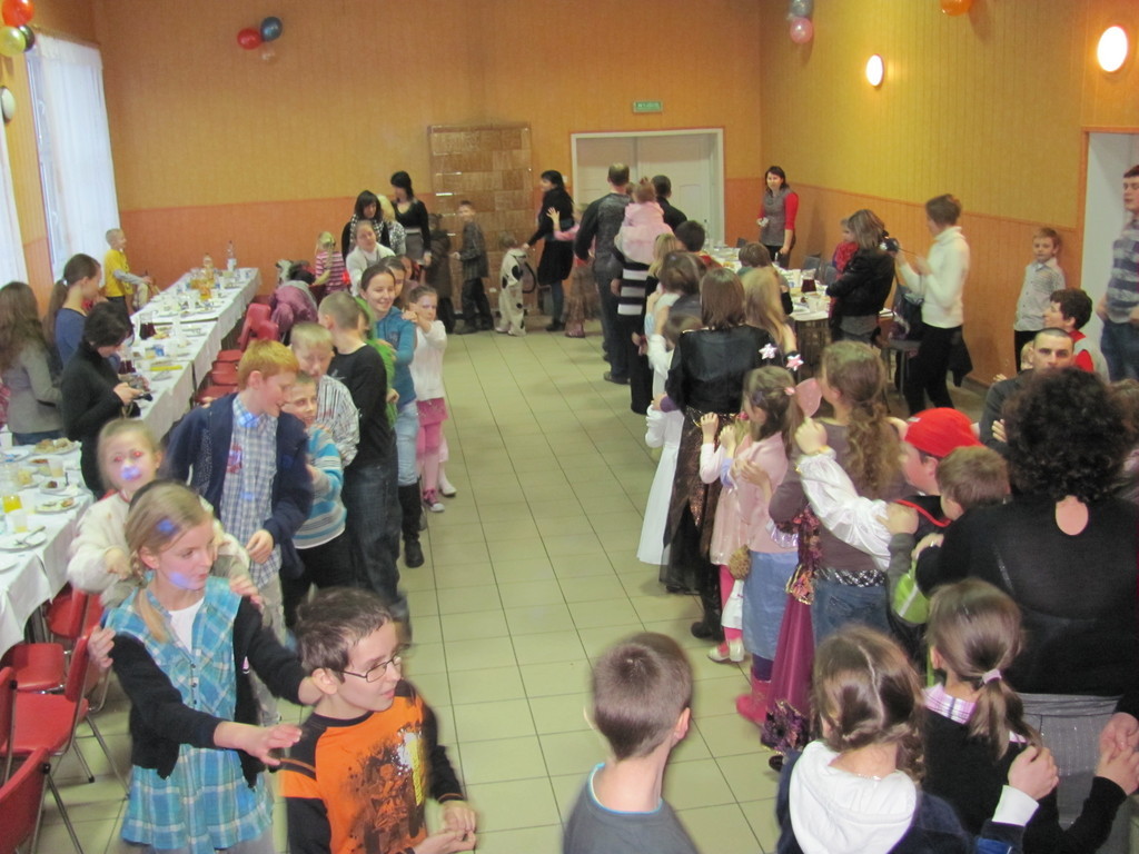 Bal prowadził zespół Full Music. Wodzirejem imprezy był lider zespołu, który zachęcał dzieci do wspólnej zabawy . Podczas imprezy oprócz tańców organizowano wiele konkursów, w trakcie których można było wygrać wiele drobnych upominków. Jak na każdym balu tak i na naszym wybrano Królową i Króla Balu. Królową balu została Pippi Langstrumpf, w którą wcieliła się Kasia Półrolniczak z klasy II, a królem pirat- czyli Klaudiusz Zimny z klasy III. Wyróżniono wspaniałą pielęgniarkę oraz wiele innych przebrań. Aby mali tancerze nie opadli z sił, został dla nich przygotowany poczęstunek nie tylko słodki. Radosne uśmiechy na twarzach dzieci pozwoliły nam stwierdzić, że impreza była bardzo udana.