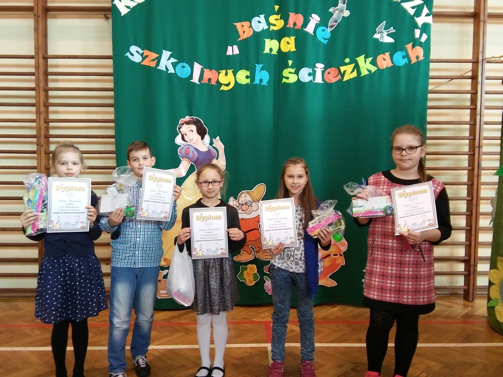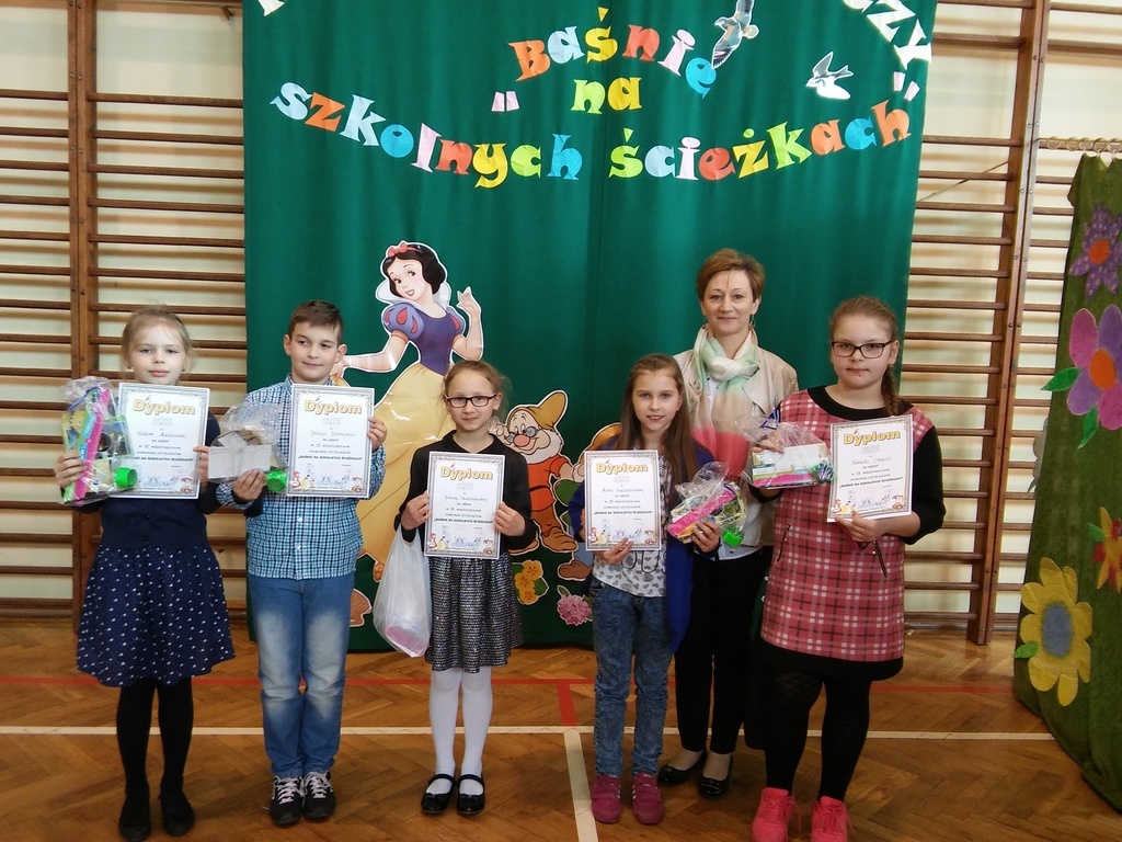 29 marca klasa III reprezentowała naszą szkołę w II Międzyszkolnym Konkursie Czytelniczym "Baśnie na szkolnych ścieżkach" organizowanym przez SP nr 1 w Koźminie Wlkp. Wśród 27 uczestników znalazło się pięcioro naszych trzecioklasistów z wychowawczynią Ewą Kulka: Marika Wojciechowska, Klaudia Stencel, Wiktoria Maćkowiak, Joanna Suszczyńska i Jakub Jędrzejak. Uczestnicy wykazali się szeroką wiedzą dotyczącą przeczytanych baśni Andersena, braci Grimm, Peraulta oraz Brzechwy, wrócili z dyplomami i drobnymi upominkami, ale przede wszystkim z zadowoleniem dobrze wykonanego zadania.