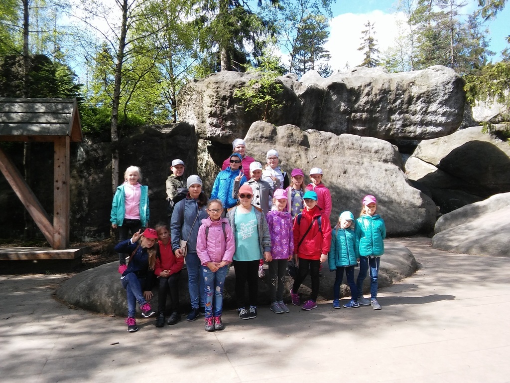 Klasa III wraz z wychowawczynią p. Ewą Kulka i silną grupą rodziców udała się na 3 dniową wycieczkę do Kotliny Kłodzkiej. Pierwszy dzień zaczęliśmy od zwiedzania Kopalni Złota w Złotym Stoku. Potem udaliśmy się do Kłodzka do Minieurolandu czyli parku miniatur uczestnicząc w warsztatach modelarskich. Z największą przyjemnością spędziliśmy trochę czasu na placu zabaw. Zmierzając w kierunku Karłowa gdzie mieliśmy nocleg, odwiedziliśmy Sanktuarium Wambierzyckiej Królowej Rodzin. Drugi dzień rozpoczął się od zwiedzania muzeum zabawek, a następnie przekroczyliśmy granicę udając się do Czech- do Adrszpachu. Skalne Miasto wielu z nas bardzo zachwyciło. Trzeciego dnia nie było łatwo- musieliśmy pokonać labirynty szczelin i zaułków Błędnych Skał. Trasa turystyczna miała niepowtarzalny urok. Chwilę relaksu przyniósł spacer po parku zdrojowym w Kudowie Zdrój. A potem wyczekiwany całą wycieczkę tor saneczkowy w Polanicy. Było super! Jadąc w kierunku domu zatrzymaliśmy się na lotnisku we Wrocławiu, gdzie udało nam się poobserwować start samolotu. Zmęczeni, ale pełni wrażeń szczęśliwie wróciliśmy do domu.