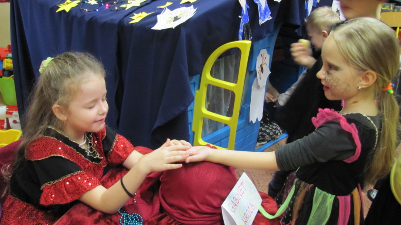 Nasze przedszkolne andrzejki są chyba najbardziej uwielbianą imprezą przez dzieci, zapewne dlatego,że nie brakuje w niej magii i czarodziejskiego uroku, za czym moje przedszkolaki przepadają. W tym roku zarówno dzieci i ich rodzice wykazali się niezwykłą pomysłowością i kreatywnością co do strojów dzieci - na sali gościliśmy: czarownice, cyganki, magów... Zabawa była wspaniała - wróżyliśmy, rzucaliśmy zaklęcia, tańczyliśmy a zabawę urozmaicały nam występy magów oraz wróżenie z rąk i kuli przez cyganki.
