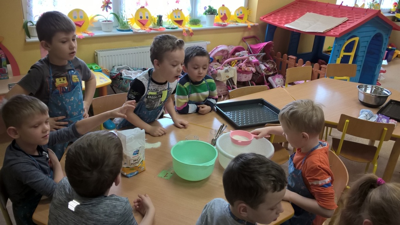 Tuż przed świętami wielkanocnymi przedszkolaki z grupy –6latki postanowiły upiec mufinki.