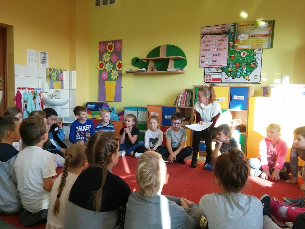W dniu 11 października 2018 r. w naszej szkole odbył się „ Dzień Głośnego Czytania” w klasach I-III. Uczniowie poznali tajemnicę lisa Lucka, jednego z bohaterów leśnej polany„ Gangu u Słodziaków”. Po krótkiej rozmowie bibliotekarki z dziećmi na temat znaczenia pojęcia tajemnica bibliotekarka przeczytała fragment książki „Gang u Słodziaków”. Opowiadanie było przerywane, aby na bieżąco wyjaśniać trudne słowa i wyrażenia. Do tekstu były też zadawane pytania sprawdzające. Uczniowie uważnie słuchali tekst, gdyż na zadane przez bibliotekarkę pytania odpowiadalibezbłędnie. Podsumowując spotkanie bibliotekarka przypomniała uczniom „ Pamiętaj, jeśli ktoś powierzy Ci swoją tajemnicę to jej nie zdradzaj. Tajemnica to skarb”. Na koniec spotkania bibliotekarka podziękowała wszystkim zebranym uczniom i nauczycielom za wspólnie spędzony czas