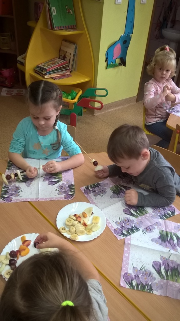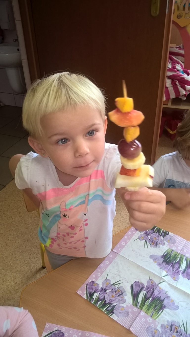 Jak co roku przedszkolaki poznają moc i siłę, jaką dają nam owoce. Pyszne szaszłyki składające się z owoców wykonała grupa maluszków podczas zajęć. Było smacznie i … zdrowo.