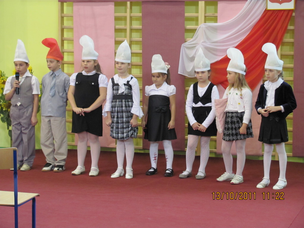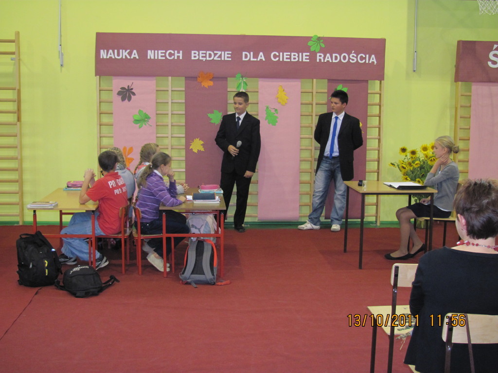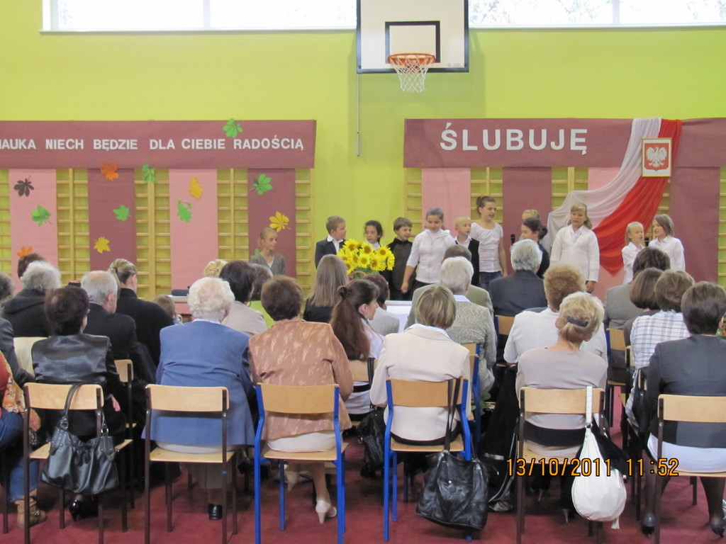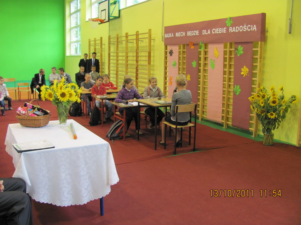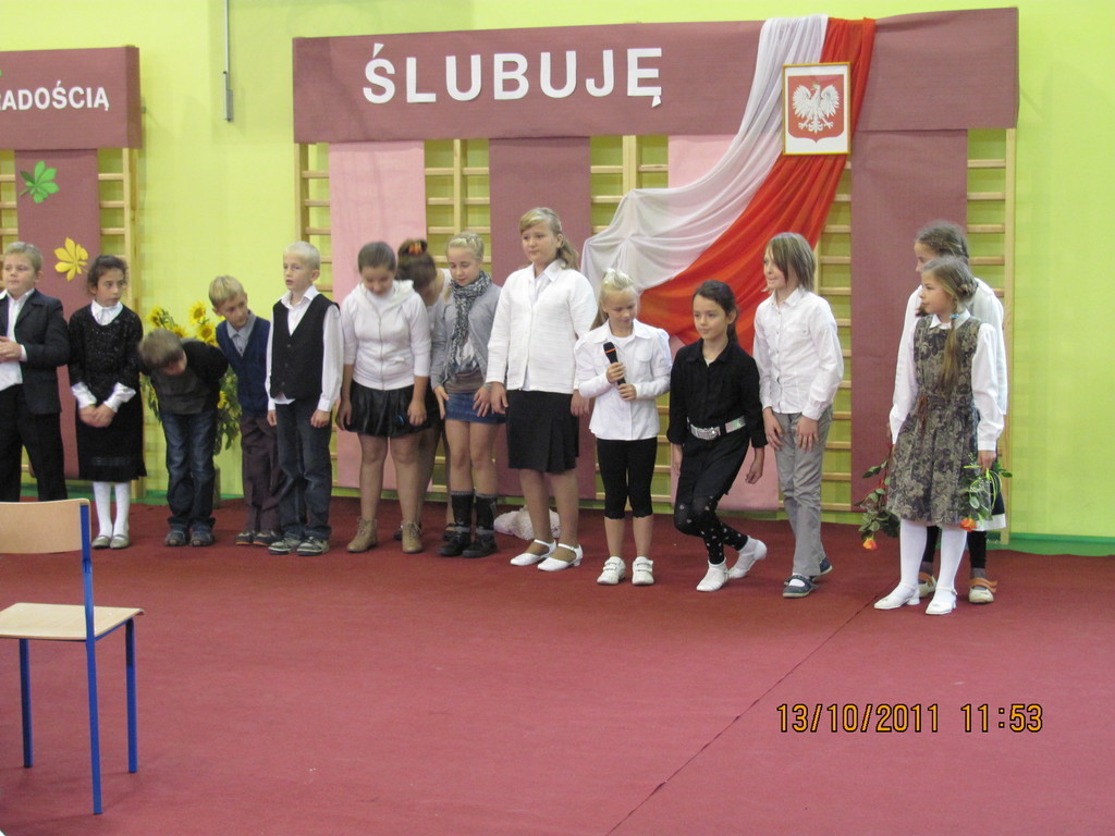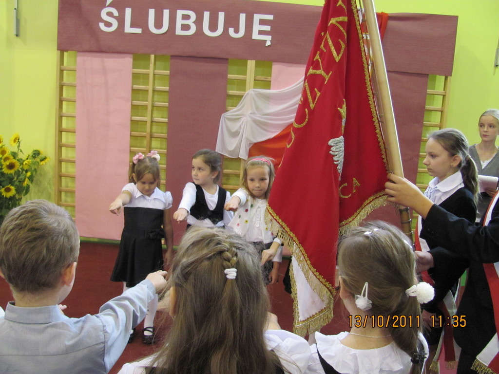 Tymi słowami przewodnicząca szkolnego samorządu uczniowskiego przywitała pierwszoklasistów, którzy 13 października 2011r. mieli stać się prawdziwymi uczniami naszej szkoły. Zanim dyrektor szkoły Bartłomiej Rogala dokonał uroczystego pasowania, pierwszoklasiści złożyli ślubowanie na sztandar szkoły oraz przedstawili program artystyczny wcielając się w bajkowe smerfy.
