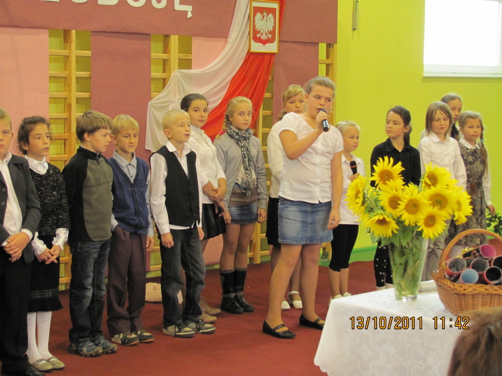 Tego dnia złożyliśmy życzenia także nauczycielom, katechetom, pracownikom obsługi, administracji oraz emerytom. To im dzieci z klasy III, IV i VI zadedykowały wiersze i piosenki dziękując za trud nauczania i wychowania.