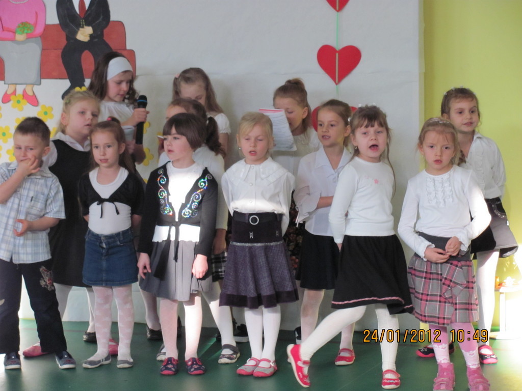 Oprócz montażu słowno-muzycznego, goście obejrzeli także pokazy taneczne w wykonaniu swoich wnuczek i wnuków przygotowane pod okiem p. K. Grzemskiej. Po części artystycznej dzieci odśpiewały "Sto lat", a nastepnie wręczyły laurki z życzeniami. Zaś seniorzy odwdzięczyli się wnukom radosnymi spojrzeniami i gromkimi brawami. Uroczystość zakończyła Biesiada przy muzyce i słodki poczęstunek, który przygotowali rodzice. Spotkanie upłynęło w miłej i serdecznej atmosferze.