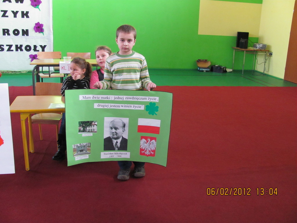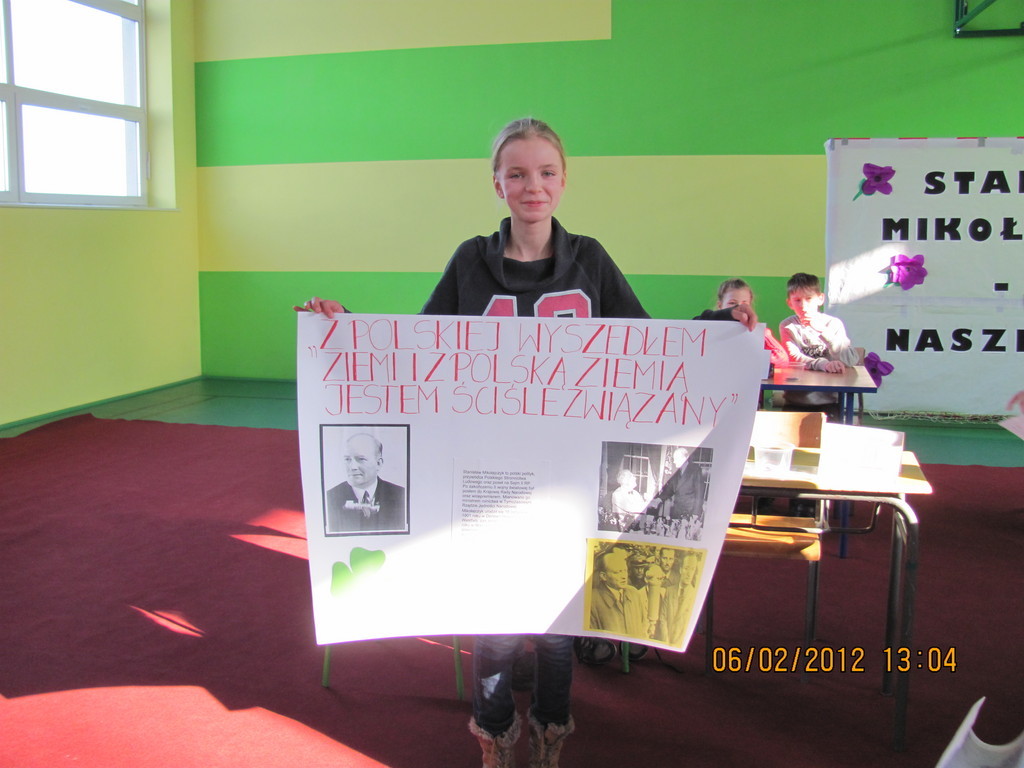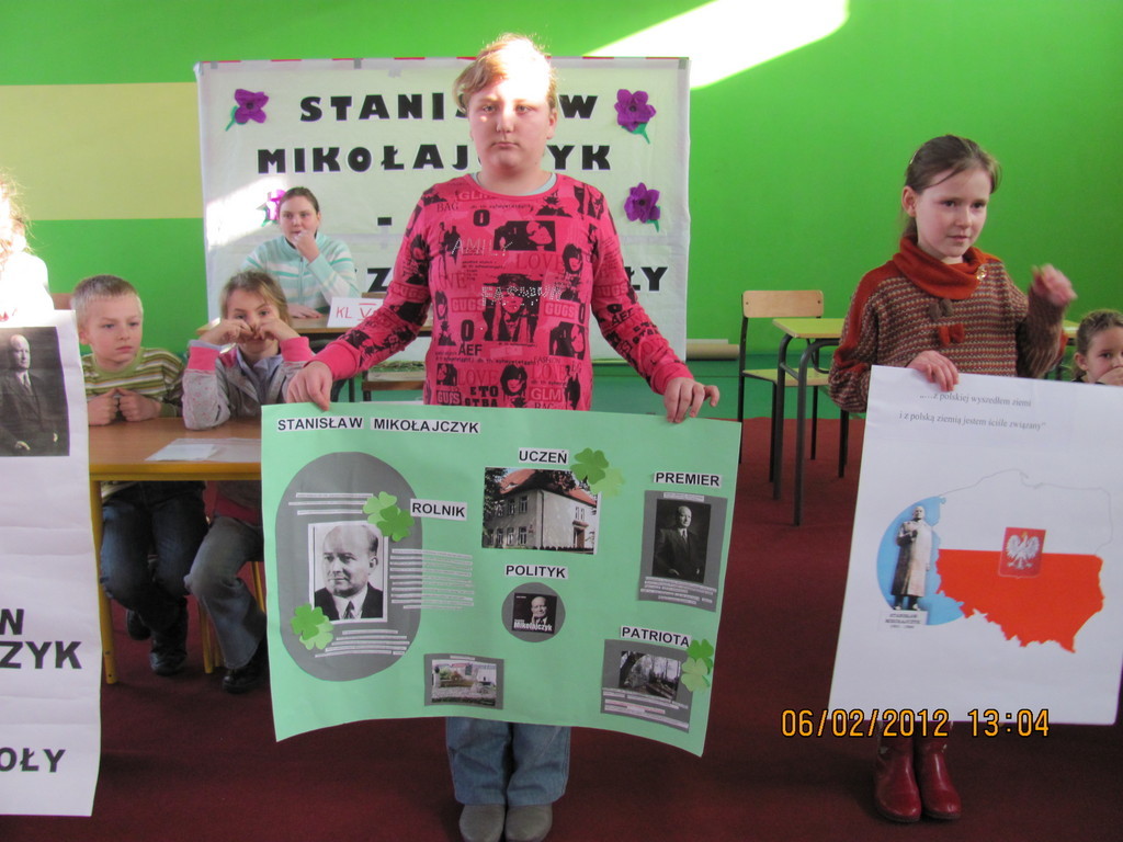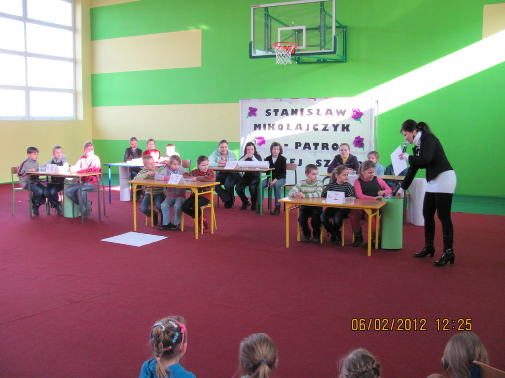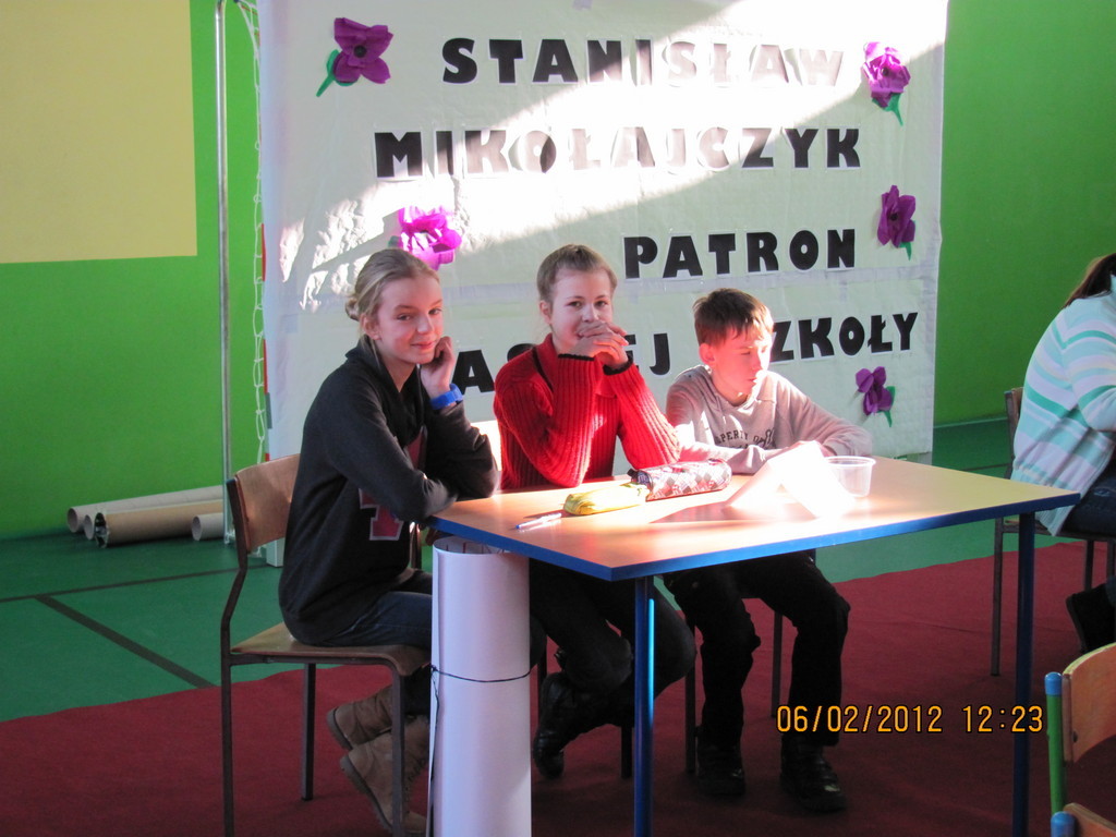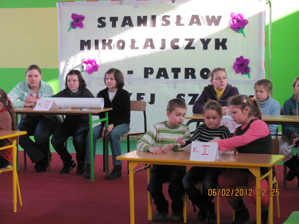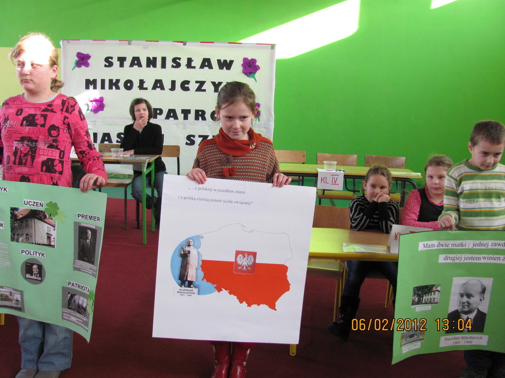 Dnia 6 lutego 2012 roku odbył się konkurs wiedzy o Patronie naszej szkoły – Stanisławie Mikołajczyku, zorganizowany przez p. Magdalenę Fabich - Bondzyło, która do jury konkursu zaprosiła p. dyrektora B. Rogalę, p. Aleksandrę Szymczak i p. Lucynę Staniek.
