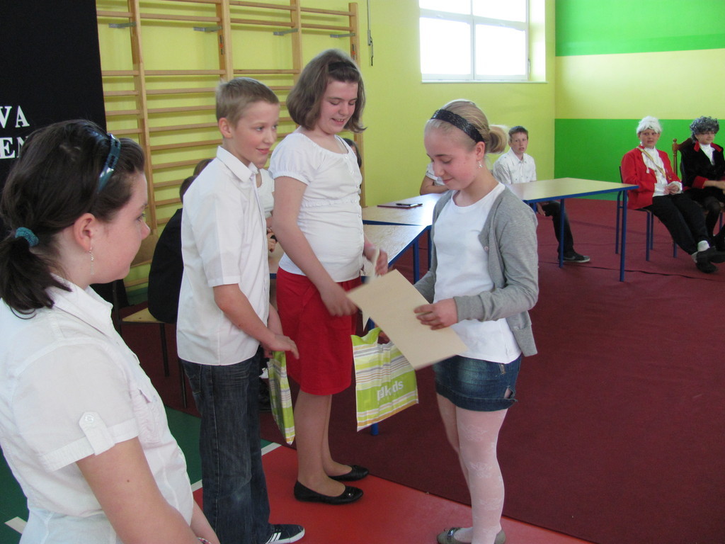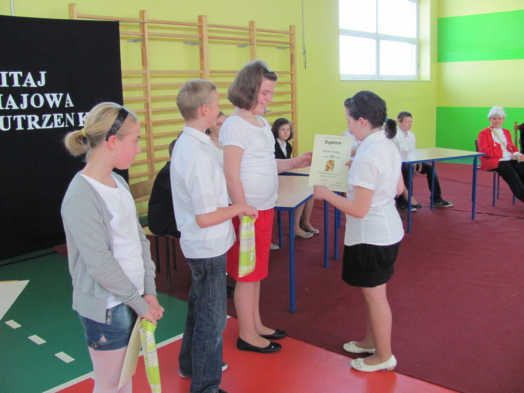 Po apelu przedstawiciele Samorządu Uczniowskiego ogłosili wyniki konkursu na najbardziej wiosenny strój, który odbył się 21 marca i wręczyli dyplomy oraz nagrody, ufundowane przez SU. Jury, które stanowili przedstawiciele samorządów poszczególnych klas, zdecydowało następująco: