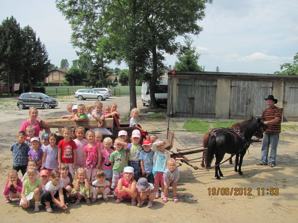 We wtorek 19 czerwca na przedszkolaków z grupy 3-4 i 5 latki czekała ogromna niespodzianka – pod szkołę podjechał woźnica na bryczce zaprzęgnięta w dwa kucyki. Przejażdżki bryczką sprawiły dzieciom ogromną frajdę i dużo radości, a przy okazji dzieci dowiedziały się wielu ciekawostek o koniach. Wychowawczynie z przedszkolakami pragną serdecznie podziękować Panu Banaszakowi za zapewnienie atrakcji dzieciom.