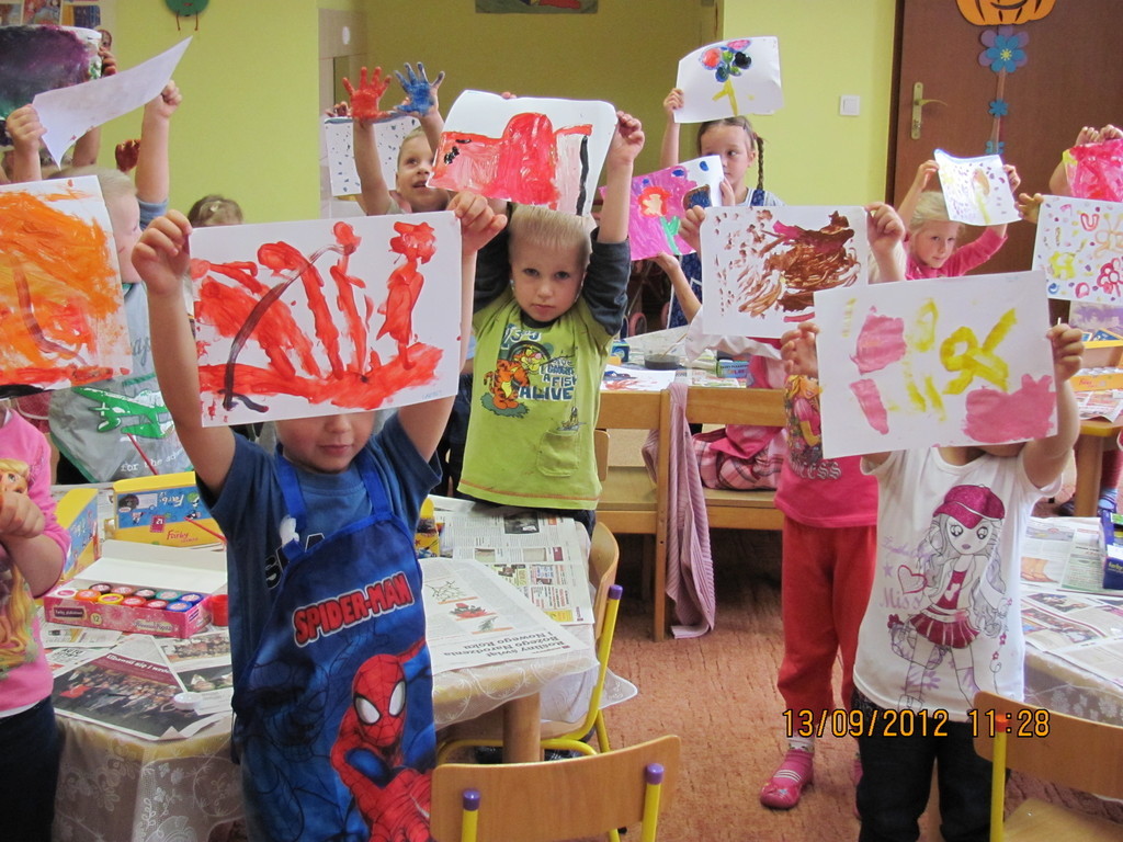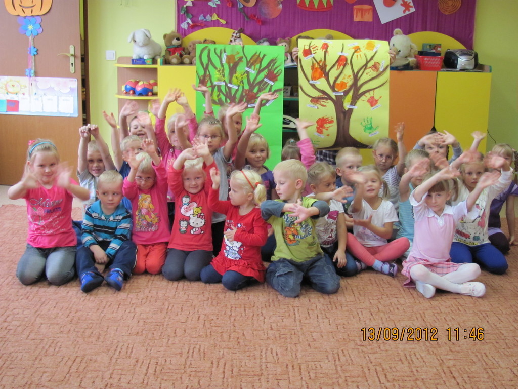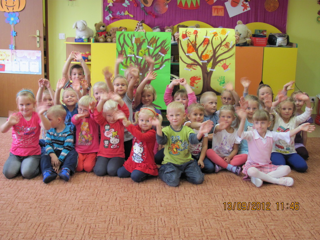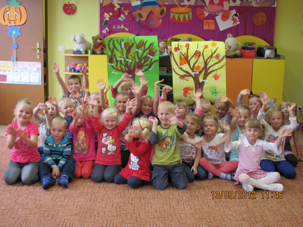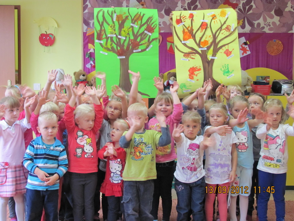 We wrześniu w ramach zajęć integracyjnych ”Poznajmy się” przedszkolaki wykonały przedszkolne drzewka, zamiast liści odbijały swoje rączki. Zajęcia sprawiły im dużo frajdy i radości. A oto efekty naszej pracy: