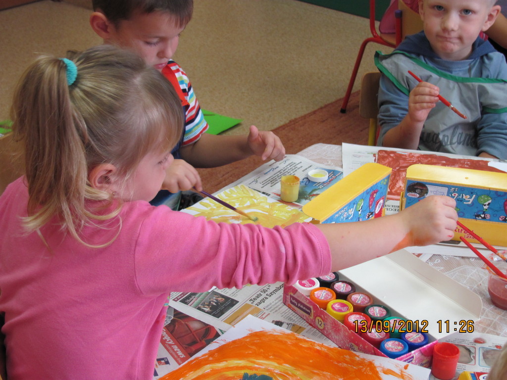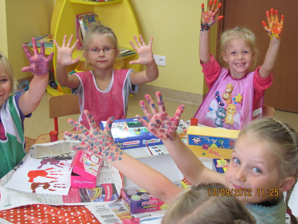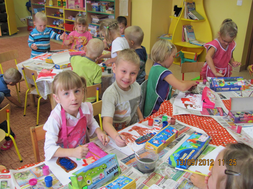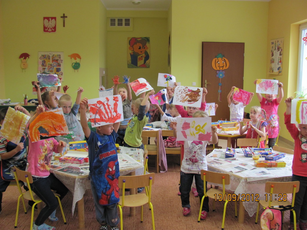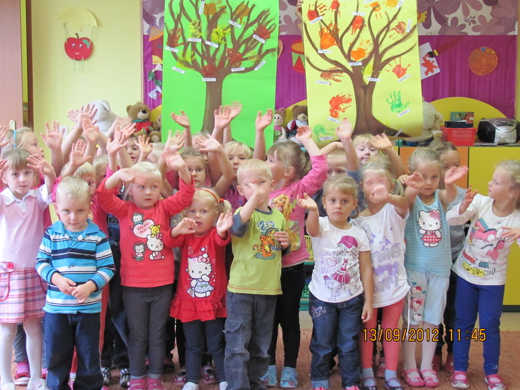We wrześniu w ramach zajęć integracyjnych ”Poznajmy się” przedszkolaki wykonały przedszkolne drzewka, zamiast liści odbijały swoje rączki. Zajęcia sprawiły im dużo frajdy i radości. A oto efekty naszej pracy: