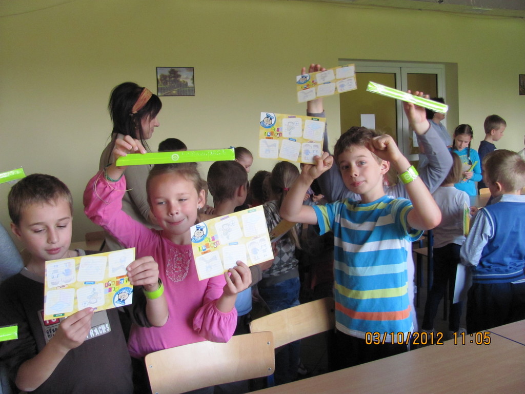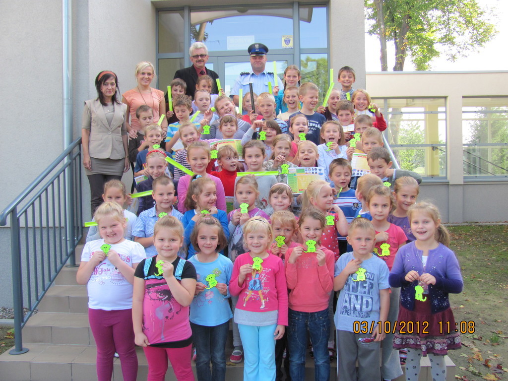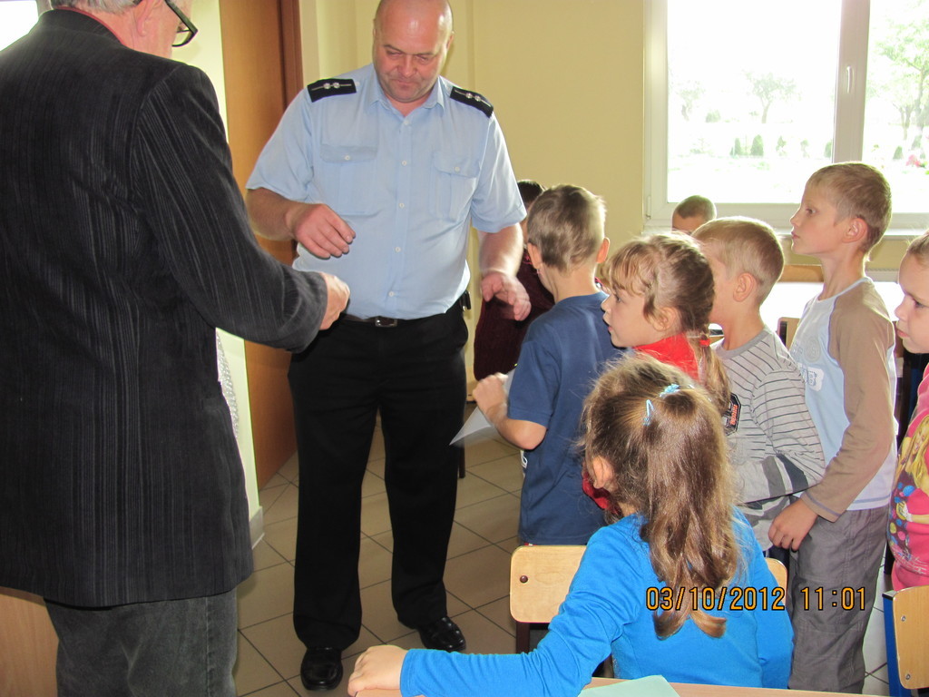 Jak co roku początek roku szkolnego to dobry moment na pogadankę o naszym bezpieczeństwie. W tym roku pomógł nam w tym pan policjant. Udzielił dobrych rad i przestrzegł przed bezmyślnością. Największe zainteresowanie wzbudziła część rozmowy dotycząca stroju i wyposażenia policjanta (spójrzcie na zdjęcia). W podziękowaniu za obecność i chęć niesienia pomocy w każdej sytuacji przedszkolaki obdarowały p. policjanta wykonanymi przez siebie rysunkami.