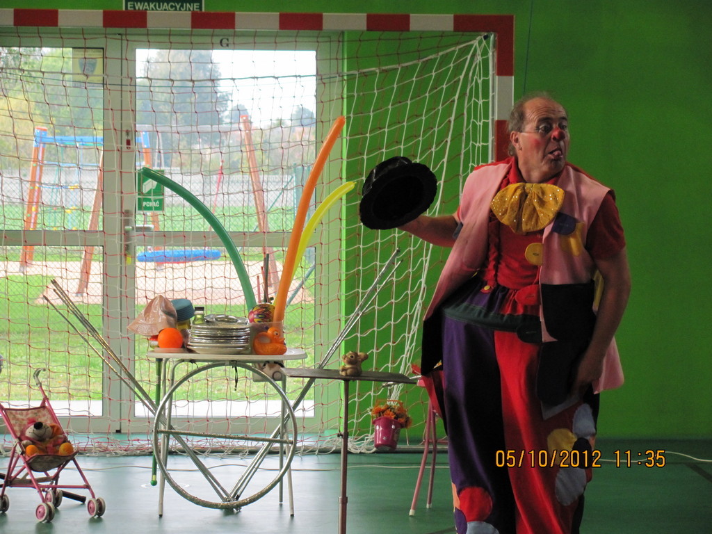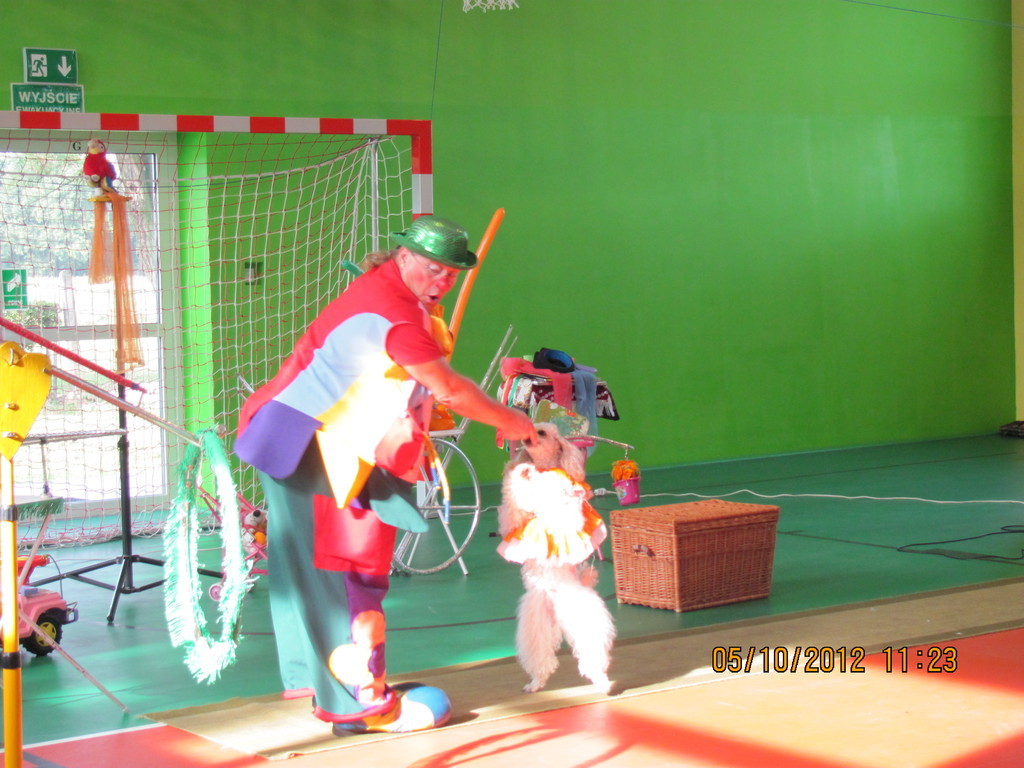 Naszą szkołę odwiedził ze swoim występem cyrk Fantik. Publiczność najbardziej oklaskiwała przesympatycznego clowna. To on pokazał nam ten inny świat, zapraszając do zabawy naszych najodważniejszych kolegów. Mogliśmy podziwiać akrobatyczne popisy psa, kota, gołębi, małpki.