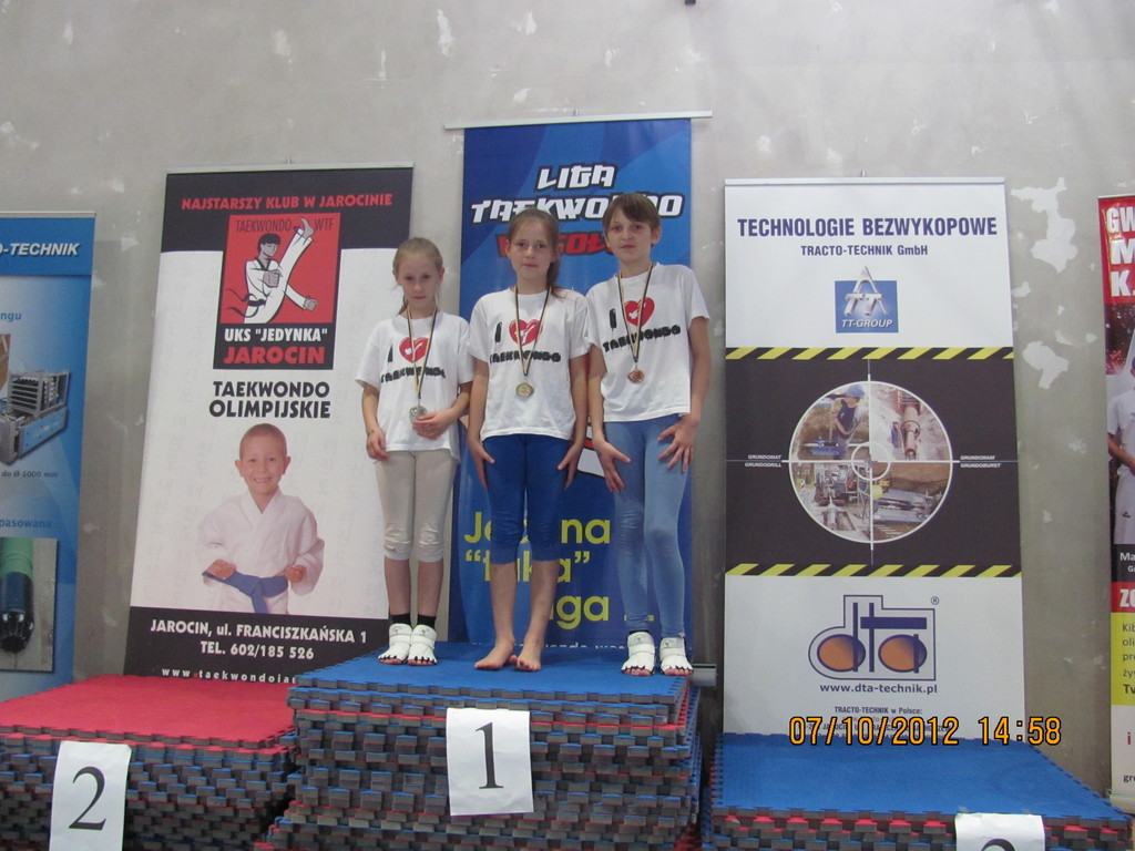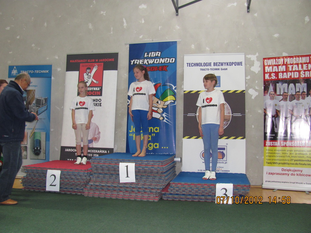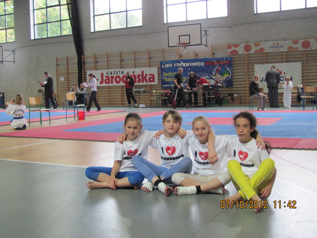 7 października reprezentacja naszej szkoły w składzie: Katarzyna Półrolniczak, Alicja Kowańdy, Anna Kulka i Natalia Wosiek, uczestniczyła w III Kolejce LIGI TAEKWONDO XII WESOŁEK CUP 2012 o Puchar Burmistrza Jarocina. Dziewczyny miały do zaliczenia dwie konkurencje sprawnościowe: TWIO-AP-CHAGI i DUBALDANGSEONG DOLLYO-CHAGI MOMTONG na czas.
