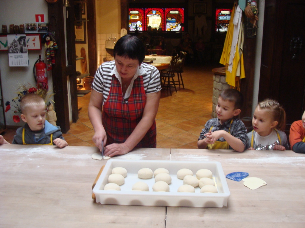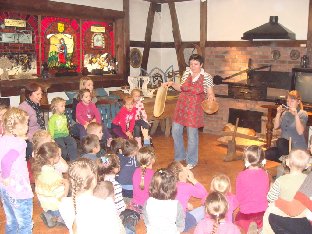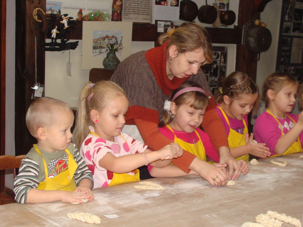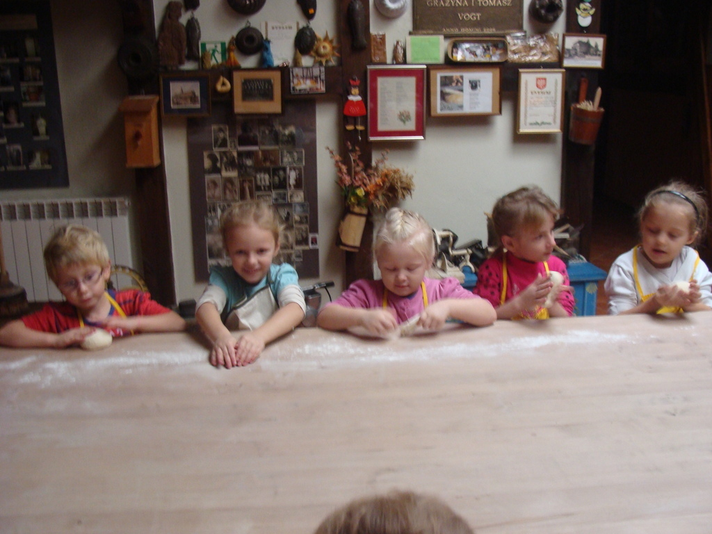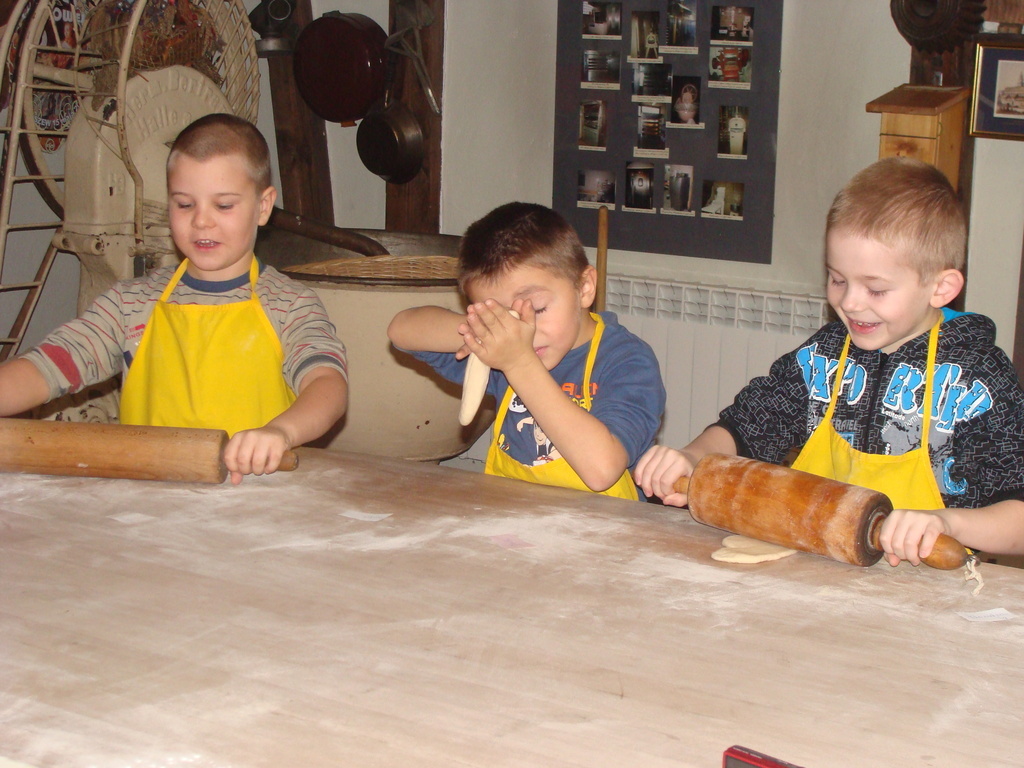 23 listopada br. przedszkolaki z grup 4-5-latki i 3-6 – latków wybrały się na wycieczkę do Muzeum Piekarstwa w Pleszewie. Ogromną radość sprawiło dzieciom formowanie z ciasta bułeczek o nietypowych kształtach- były warkocze, ślimaczki, serduszka, rogale, słoneczka itp. Bułeczki specjalnie dla nas zostały upieczone. Dzieci miały również możliwość przyjrzeć się z bliska różnorodnym sprzętom i maszynom, które służyły dawniej piekarzom do wypieku pieczywa. Każdy przedszkolak otrzymał dyplom Mistrzowski oraz własnoręcznie zrobioną bułeczkę do domu. Po wizycie w muzeum, postanowiliśmy pospacerować po mieście, aż w końcu dotarliśmy do parku. Tam mogliśmy przez chwilę pobawić się na placu zabaw – a potem czas było wracać do przedszkola. Zapraszamy do galerii, gdzie upamiętniliśmy te chwile.