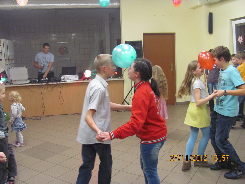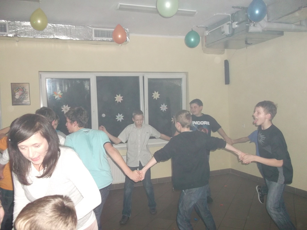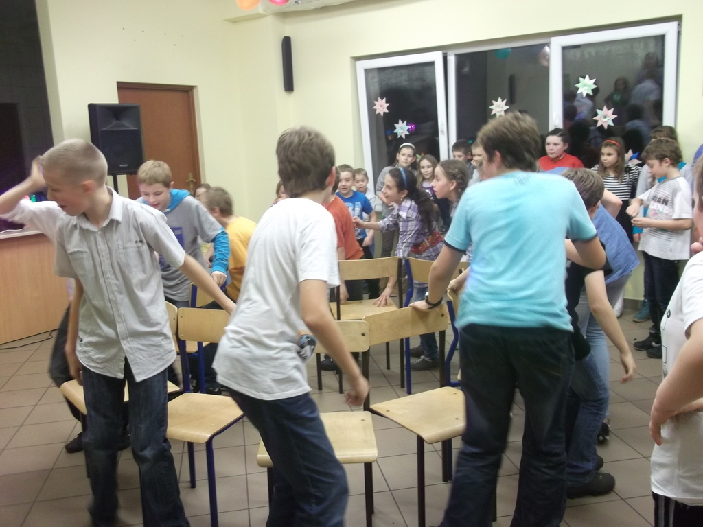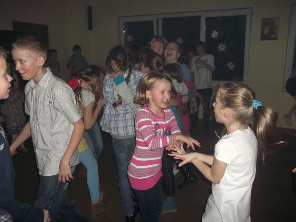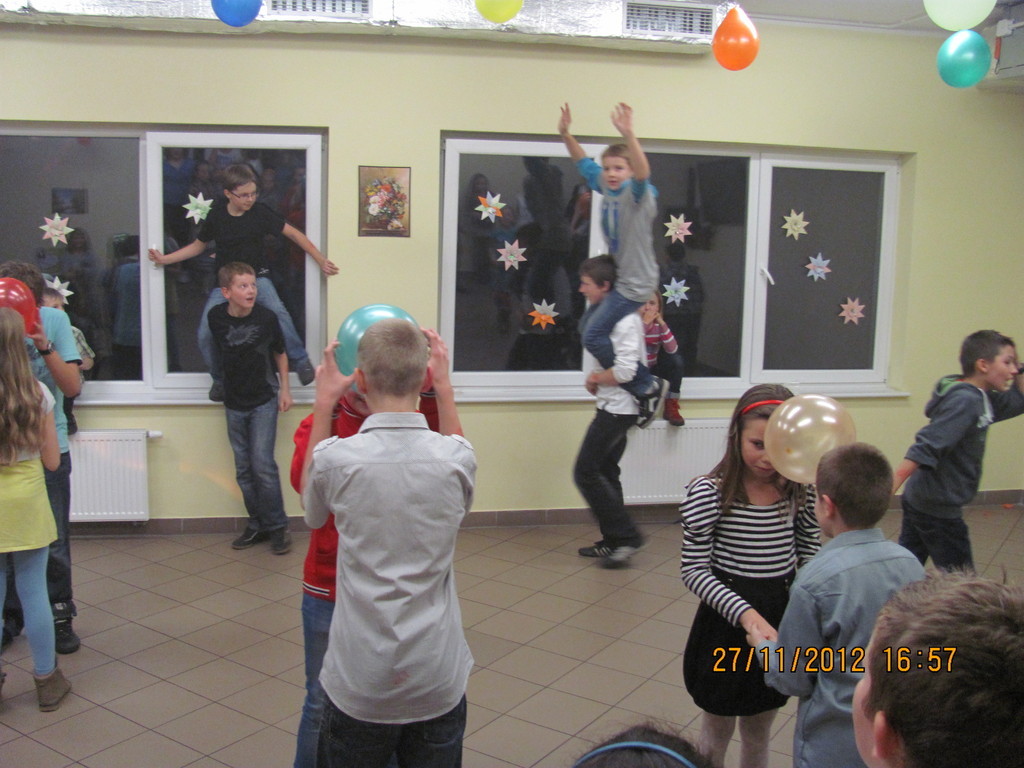 Dzięki uprzejmości Rady Rodziców mogliśmy poszaleć w rytmie znanych przebojów, które specjalnie dla nas wybierał dj. Były słodkości i napoje. Były również konkursy i drobne upominki od Samorządu Uczniowskiego. Chętnych do rywalizacji nie brakowało. Nie brakowało również energii do zabawy – klasy I-VI bawiły się wspólnie w atmosferze serdeczności i przyjaźni. SU dziękuje rodzicom uczniów klasy VI za pomoc w przeprowadzeniu imprezy; pani Kostuj, pani Maleszce oraz panu Banaszakowi oraz wszystkim nauczycielom, którzy tego dnia byli z nami.