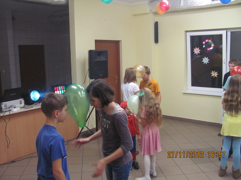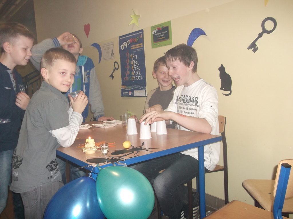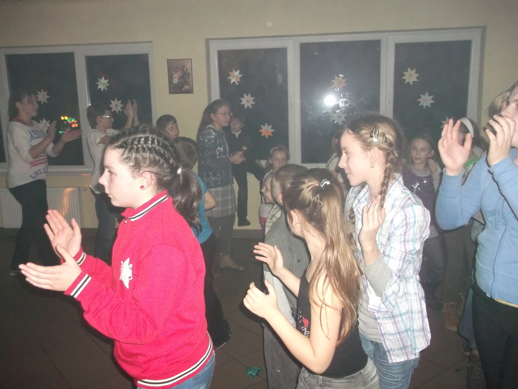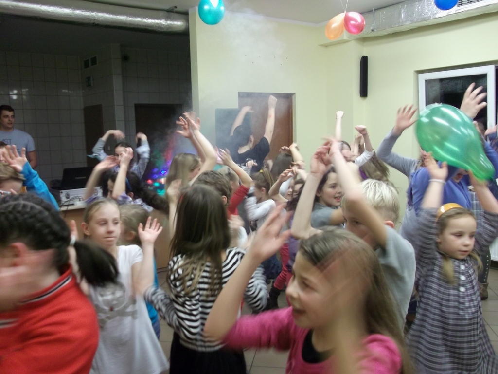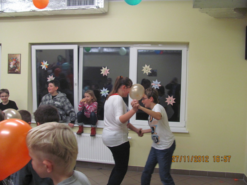 Dzięki uprzejmości Rady Rodziców mogliśmy poszaleć w rytmie znanych przebojów, które specjalnie dla nas wybierał dj. Były słodkości i napoje. Były również konkursy i drobne upominki od Samorządu Uczniowskiego. Chętnych do rywalizacji nie brakowało. Nie brakowało również energii do zabawy – klasy I-VI bawiły się wspólnie w atmosferze serdeczności i przyjaźni. SU dziękuje rodzicom uczniów klasy VI za pomoc w przeprowadzeniu imprezy; pani Kostuj, pani Maleszce oraz panu Banaszakowi oraz wszystkim nauczycielom, którzy tego dnia byli z nami.