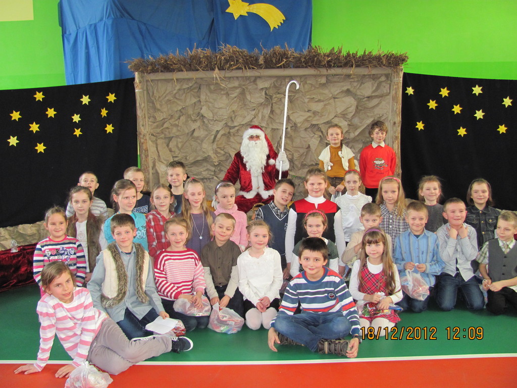 To nie był koniec niespodzianek tego dnia, bo chwilę po przedstawieniu dzieci ujrzały Gwiazdora, który tego dnia z powodu braku śniegu przyjechał bryczka, szczęśliwe ze spotkania dzieci przywitały pięknie niezwykłego gościa i na powitanie zaśpiewały mu kolędy oraz wyrecytowały wierszyki. W nagrodę każde z dzieci otrzymało prezenty.
