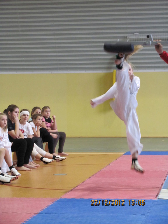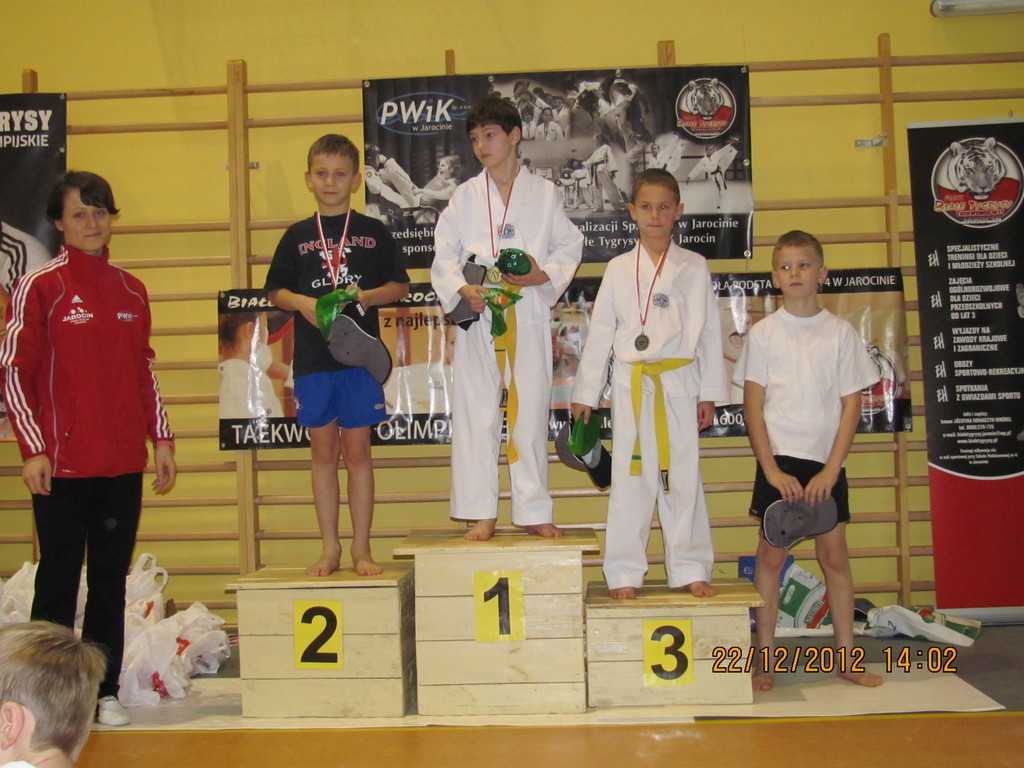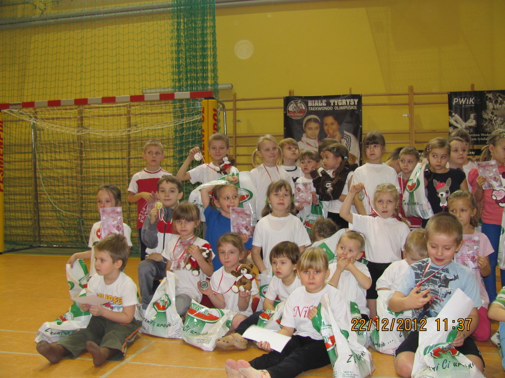 Gwiazdkowy Turniej Taekwondo, organizowany po raz drugi przez nasz Klub w okolicach Świąt Bożego Narodzenia, przyciągnął do Jarocina bardzo liczne grono zawodników wraz z całymi rodzinami. Zgodnie z regulaminem, Turniej składał się z trzech części. W godzinach dopołudniowych do walki przystąpiły najmłodsze roczniki, w wieku od 3 do 7 lat, a po zakończeniu tej rywalizacji, odbyła się sesja fotograficzna do kalendarza klubowego, przeprowadzona przez Szymona Gruchalskiego. Natomiast w sesji popołudniowej startowały starsze roczniki, czyli zawodnicy w wieku od 8 do 14 lat. Wszystkie roczniki startowały w tzw. wieloboju sprawnościowym, złożonym z dwóch (seria dopołudniowa) lub trzech konkurencji (seria popołudniowa). Medaliści poszczególnych kategorii otrzymali medale i drobne upominki przekazane przez firmę Neorol Chrzan, natomiast na wszystkich uczestników zawodów czekały paczki z słodyczami i gadżetami oraz pamiątkowe dyplomy.