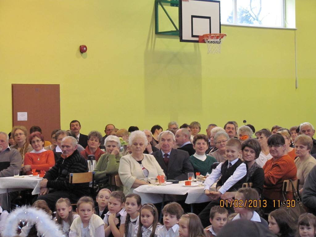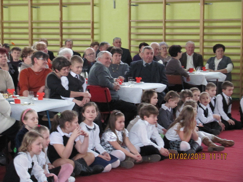 Babcia i dziadek to słowa, które każdemu dziecku kojarzą się z ciepłem, miłością i wszystkim co dobre. Nikt inny nie ma tyle cierpliwości, tyle zrozumienia i zwykłej ludzkiej życzliwości dla dużych i małych problemów dzieci. Uczniowie i przedszkolaki naszej szkoły to czują i wiedzą dlatego zaprosiły swoje babcie i swoich dziadków, dnia 1 lutego br., żeby uczcić ich święto, podziękować im za ich dobro i wyrazić swoją miłość. Zaproszeni dziadkowie licznie przybyli, aby podziwiać występy swoich wnucząt. Jako pierwsze wystąpiły dzieci z klas I, II, III natomiast główną częścią programu artystycznego był występ 50 przedszkolaków z dwóch oddziałów przedszkolnych 3-4-5-6 latków. Wszystkie dzieci pięknie zaśpiewały piosenki i wyrecytowały wiele wierszy. Wzruszeni goście obdarowali swoje wnuki gromkimi brawami. Rodzice i nauczyciele zorganizowali dla naszych kochanych dziadków mnóstwo atrakcji takich jak np. loteria, karaoke z biesiadnymi piosenkami, tańce z wnuczkami, słodki poczęstunek oraz każda z babć i każdy dziadek otrzymał upominek od swoich wnucząt. Nasi kochani dziadkowie opuścili naszą szkołę w wyśmienitych nastrojach, zadowoleni z organizacji i przebiegu uroczystości obiecali, że powrócą za rok. SERDECZNIE ZAPRASZAMY!