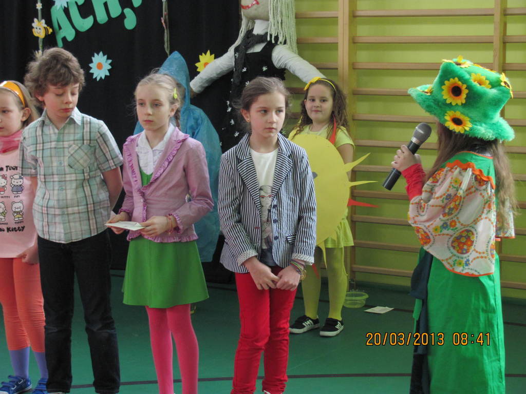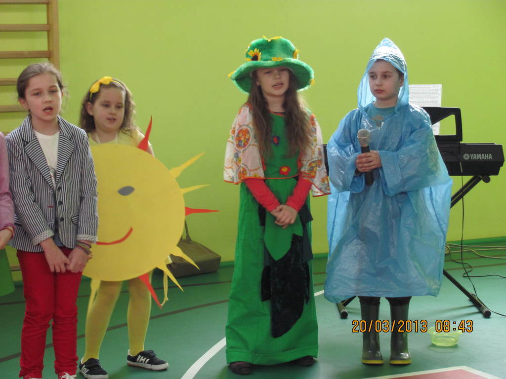 W krótkich scenkach ubarwianych piosenkami i grą na organach dzieci z klasy I i II, pod okiem swoich pań- Jolanty Gajewskiej i Ewy Kulki, próbowały zatrzymać wiosnę na dłużej. Czy im się to udało?- zobaczymy.