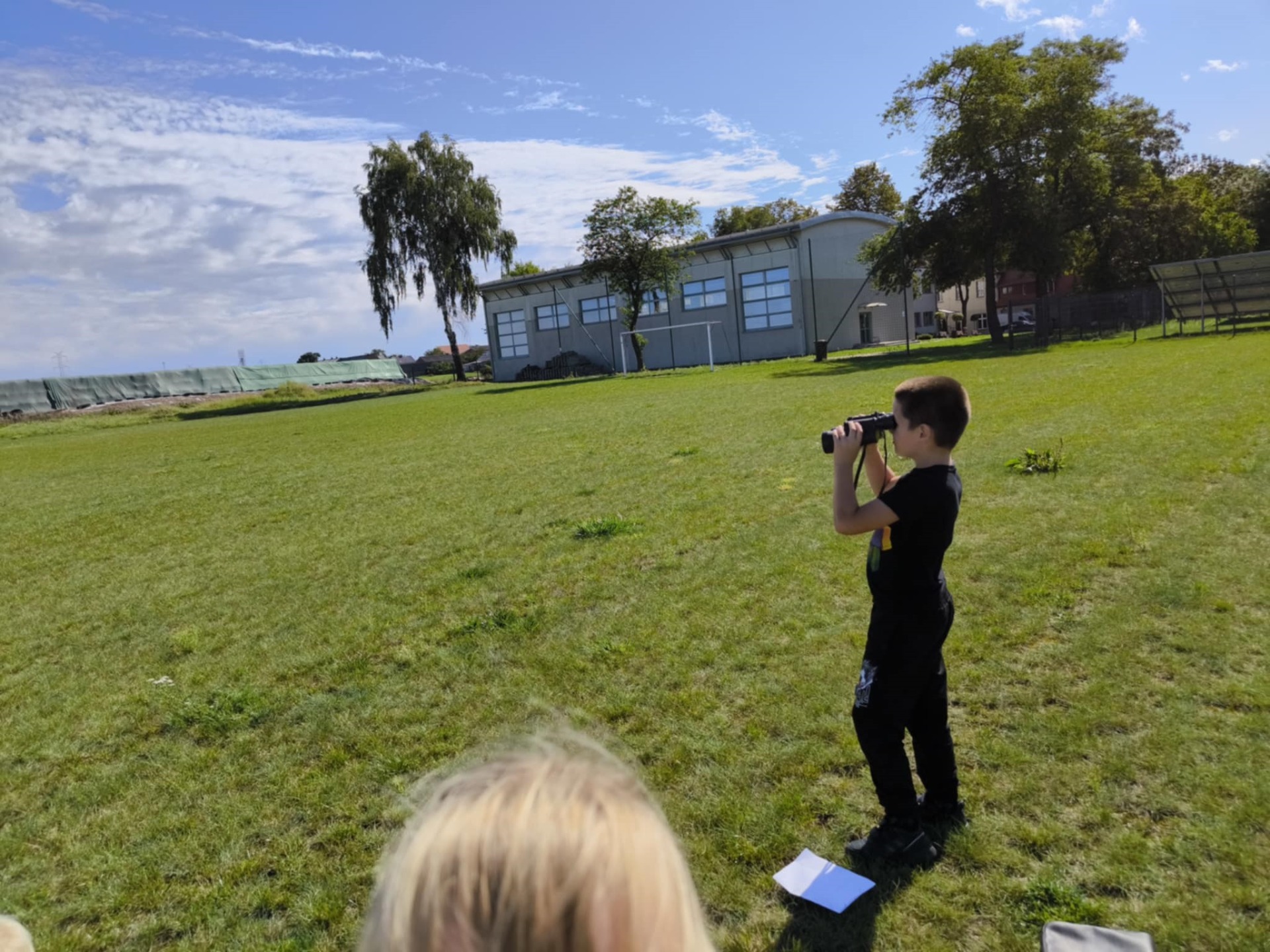 W piątek uczniowie klasy pierwszej zamienili się w małych badaczy przyrody. Podczas zajęć udali się na spacer wokół szkoły. Do obserwacji wykorzystali lupy i lornetki. Dzięki temu mogli w bardzo ciekawy sposób zaobserwować otaczającą ich przyrodę.