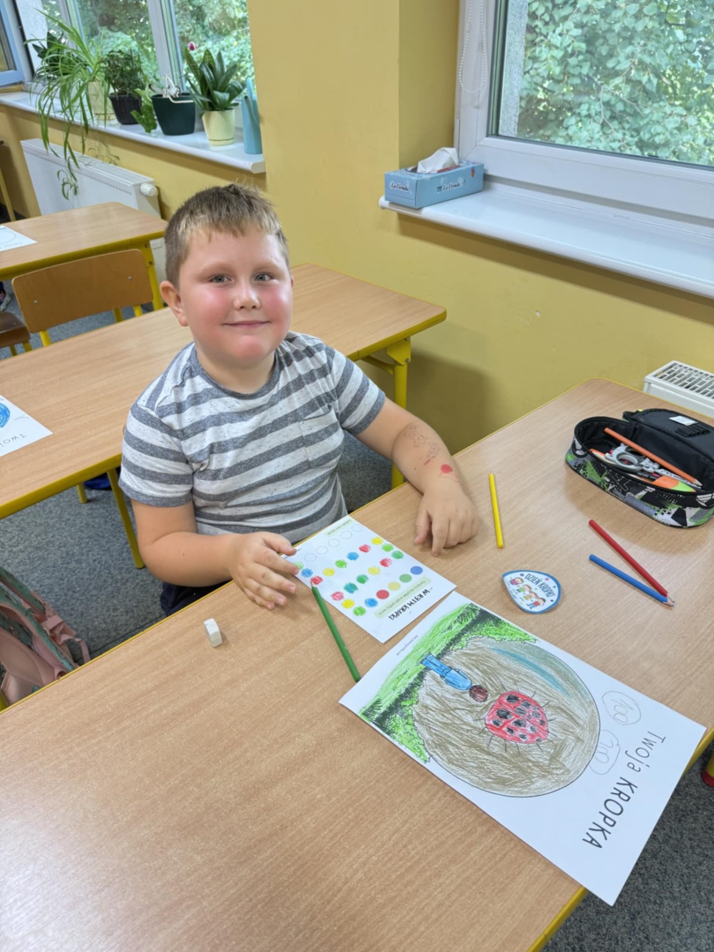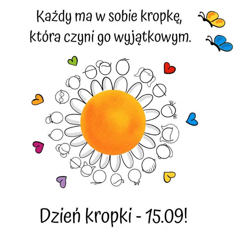 15 września obchodzony jest Międzynarodowy Dzień Kropki. Jest to święto odkrywania talentów, kreatywności, odwagi, a przede wszystkim dobrej zabawy. W tym roku uczniowie klas I-III naszej szkoły postanowili przyłączyć się do jego obchodów. Zorganizowano w tym dniu różne działania takie jak ubieranie się w „kropkowane” bluzki, było tworzenie prac plastycznych, a także zabawy ruchowe i matematyczne z kropkami jako motyw przewodni.